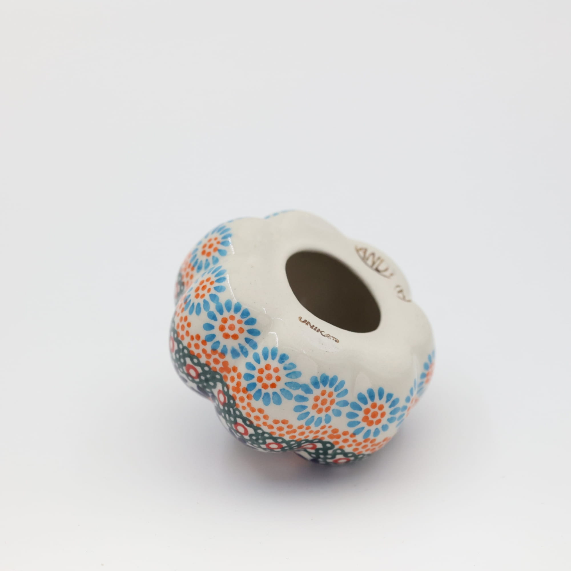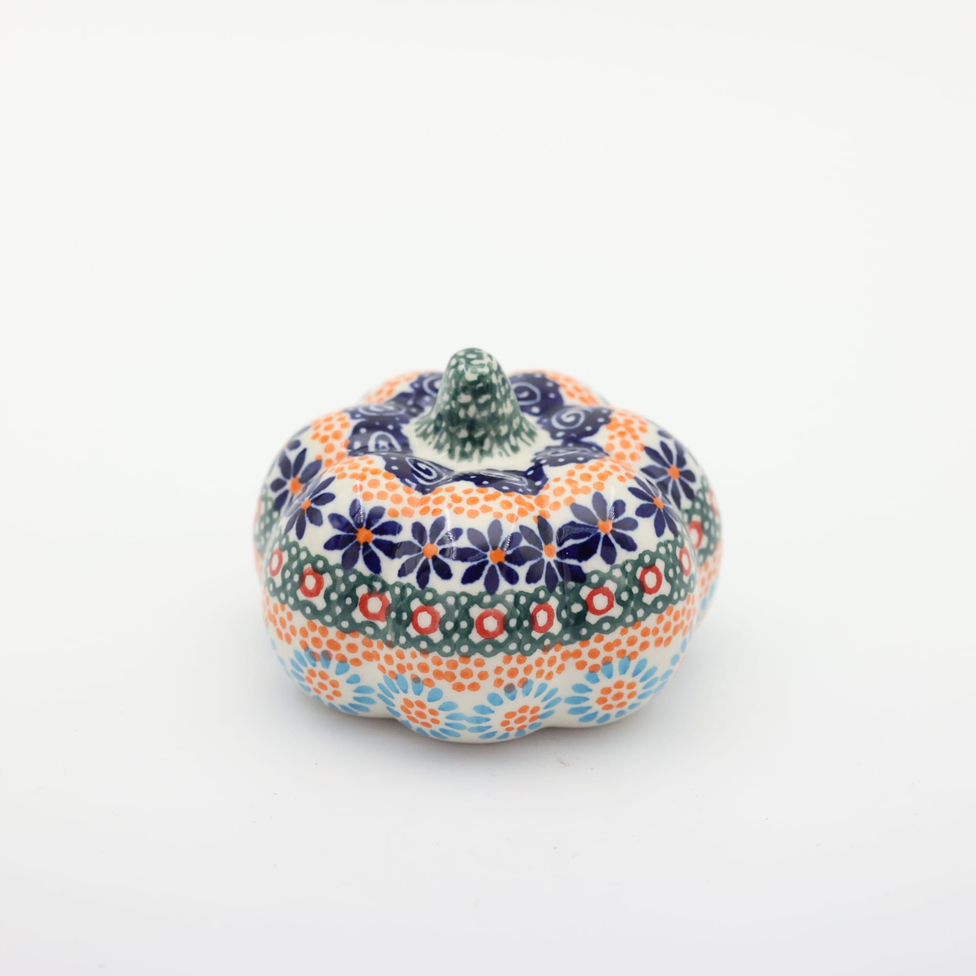 Ozdobny patison ceramiczny o wysokości 7cm, ręcznie malowana ceramika bolesławiecka to doskonały element dekoracyjny do każdego ogrodu, tarasu lub wnętrza Twojego domu.