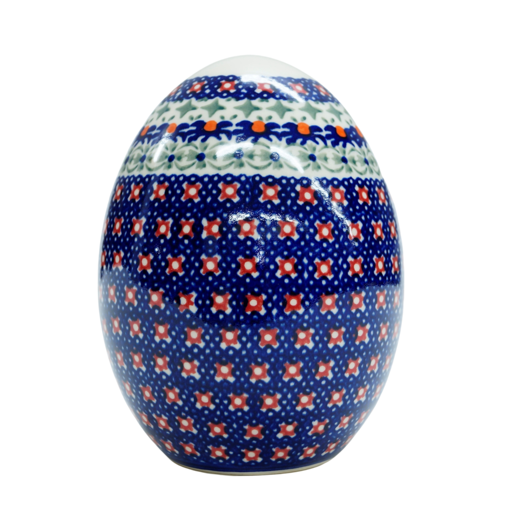 Wspaniały dekoracyjny produkt w okresie wiosny i świąt wielkanocnych. Ceramiczne jajko - duża pisanka, ręcznie malowana w motywy ceramiki bolesławieckiej. Tuż obok dekoracji świątecznych takich jak: zajączki, króliczki, kurki, koguciki czy bukiety wiosennych kwiatów stanie się idealnym pomysłem na oryginalną ozdobę domu czy ogrodu.