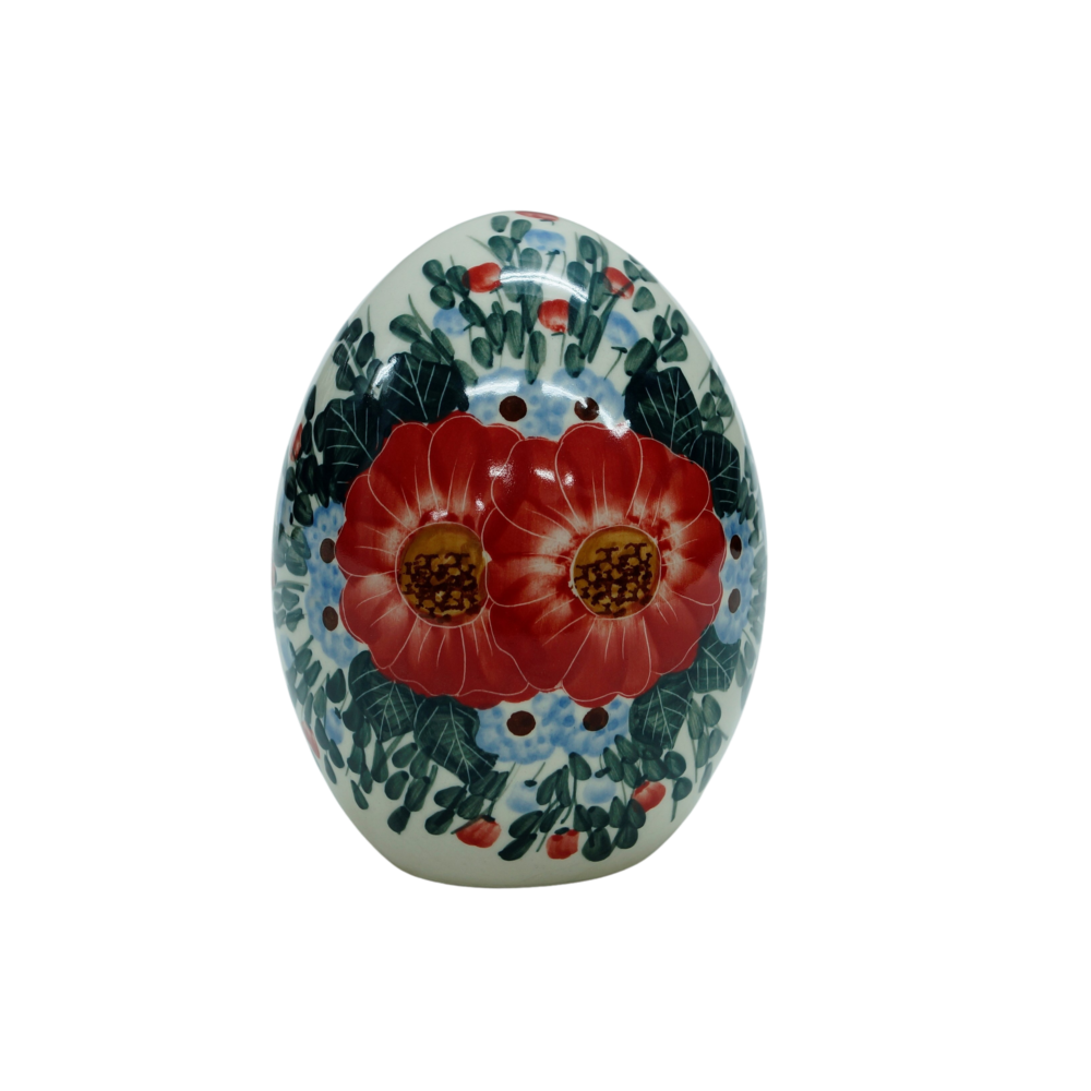 Wspaniały dekoracyjny produkt w okresie wiosny i świąt wielkanocnych. Ceramiczne jajko - duża pisanka, ręcznie malowana w motywy ceramiki bolesławieckiej. Tuż obok dekoracji świątecznych takich jak: zajączki, króliczki, kurki, koguciki czy bukiety wiosennych kwiatów stanie się idealnym pomysłem na oryginalną ozdobę domu czy ogrodu.