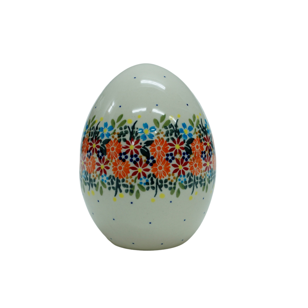 Wspaniały dekoracyjny produkt w okresie wiosny i świąt wielkanocnych. Ceramiczne jajko - duża pisanka, ręcznie malowana w motywy ceramiki bolesławieckiej. Tuż obok dekoracji świątecznych takich jak: zajączki, króliczki, kurki, koguciki czy bukiety wiosennych kwiatów stanie się idealnym pomysłem na oryginalną ozdobę domu czy ogrodu.