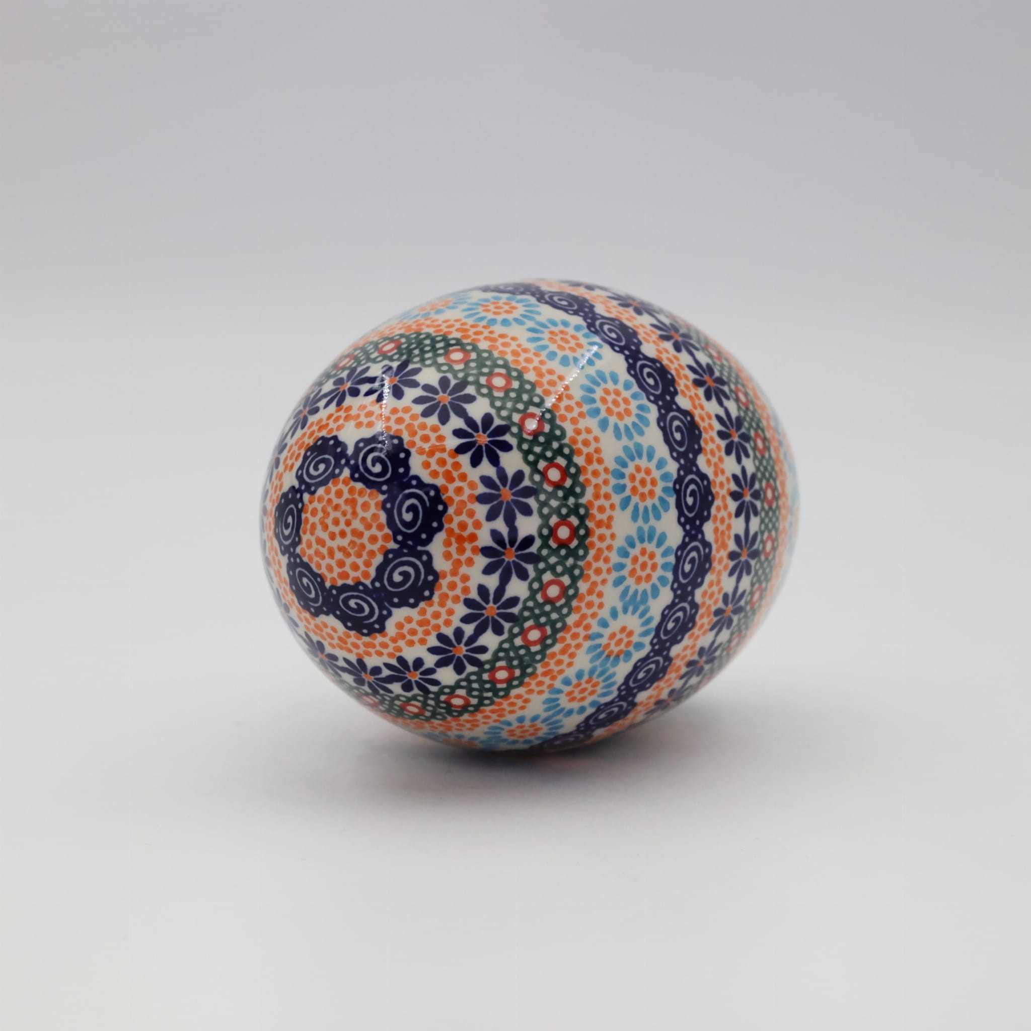 Wspaniały dekoracyjny produkt w okresie wiosny i świąt wielkanocnych. Ceramiczne jajko - duża pisanka, ręcznie malowana w motywy ceramiki bolesławieckiej. Tuż obok dekoracji świątecznych takich jak: zajączki, króliczki, kurki, koguciki czy bukiety wiosennych kwiatów stanie się idealnym pomysłem na oryginalną ozdobę domu czy ogrodu.