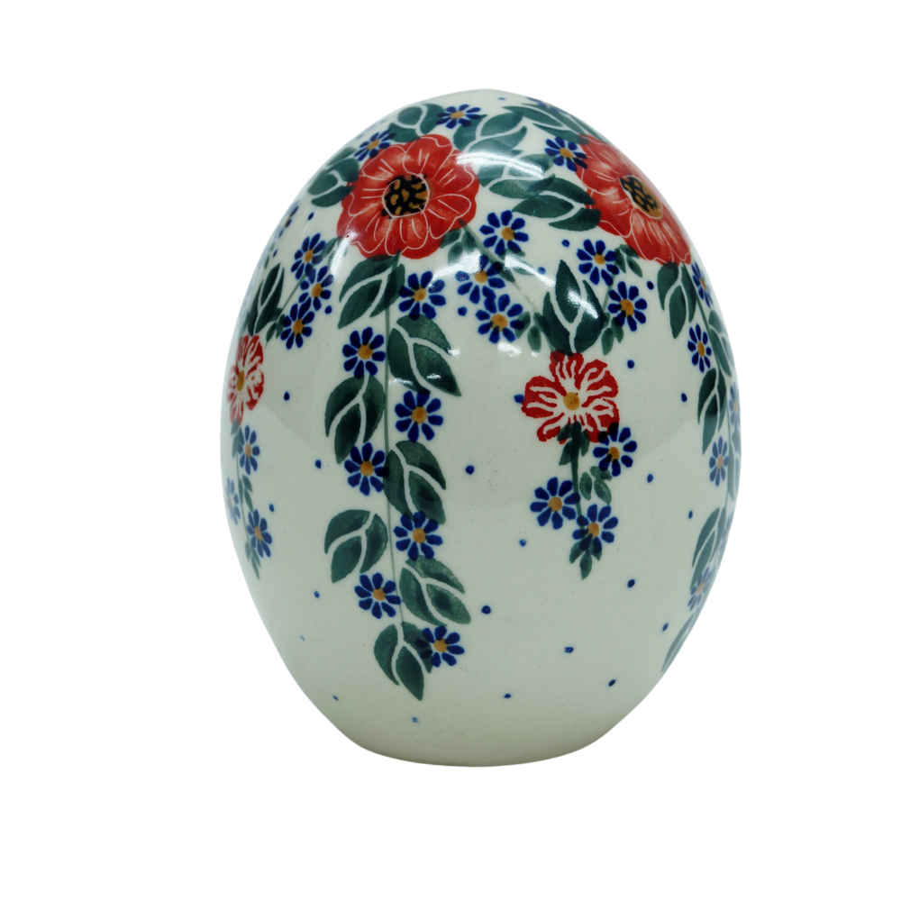 Wspaniały dekoracyjny produkt w okresie wiosny i świąt wielkanocnych. Ceramiczne jajko - średniej wielkości pisanka o wysokości 13 cm, ręcznie malowana w motywy ceramiki bolesławieckiej. Tuż obok dekoracji świątecznych takich jak: zajączki, króliczki, kurki, koguciki czy bukiety wiosennych kwiatów stanie się idealnym pomysłem na oryginalną ozdobę domu czy ogrodu.