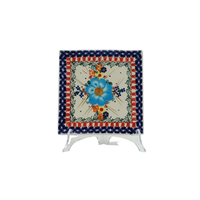 Ceramiczna podstawka, płytka pod garnek, może służyć jako tak zwany „hot plate” lub deska do krojenia. Kwadratowy kształt pozwala również wykonać z nich elementy dekoracyjne ściany, wielu naszych klientów użyło ich jako płytki ceramiczne – dekor do wykończenia ścian kuchni. Tak, to prawda, nasza oryginalna ceramika bolesławiecka ma wiele zastosowań. Płytka jest ręcznie malowana przez nieprawdopodobnie zdolnych zdobników ceramiki artystycznej przy użyciu rąk, bez żadnych procesów wspomagających przez maszyny.