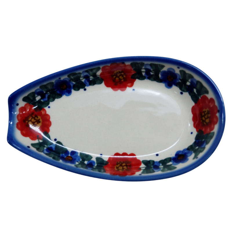 Nie uwierzymy w to, że nigdy nie rozlaliście, pobrudziliście blatu kuchennego bądź obrusu w trakcie gotowania zup, sosów czy zapiekania wszelakich gatunków mięs. Wiemy, jak uciążliwe jest ciągłe zmywanie tłustych plam w trakcie gotowania. Nam zdarzało się to bardzo często - setki razy, stąd pomysł aby zaprojektować ceramiczną podstawkę na łyżkę. Służy ona jako podpórka, podstawka łyżki do gotowania, łyżki, którą mieszamy, próbujemy przygotowywanie posiłki. Jest doskonale wyprofilowana aby utrzymać małą łyżeczkę deserową bądź dużą łyżkę kuchenną, nieprawdaż, że to produkt z serii „musisz mieć”? Zgadzamy się z tym, że gotowanie powinno sprawiać przyjemność, właśnie dlatego produkujemy wyjątkową ceramikę bolesławiecką, która oprócz efektu wizualnego jest przede wszystkim funkcjonalna. Podstawka może służyć również jako podstawka zapalniczki do odpalania kuchni gazowej przed gotowaniem czy paczki zapałek, doskonale sprawdzi się również jako naczynie do wrzucania obranych ząbków czosnku zanim wyląduję w wyciskarce a następnie rozgrzanej patelni lub zapiekanym mięsie. Zapraszamy do zapoznania się z ofertą naczyń użytkowych ceramiki artystycznej marki, ANDY CERAMIKA z Bolesławca.