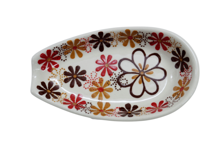 Nie uwierzymy w to, że nigdy nie rozlaliście, pobrudziliście blatu kuchennego bądź obrusu w trakcie gotowania zup, sosów czy zapiekania wszelakich gatunków mięs. Wiemy, jak uciążliwe jest ciągłe zmywanie tłustych plam w trakcie gotowania. Nam zdarzało się to bardzo często - setki razy, stąd pomysł aby zaprojektować ceramiczną podstawkę na łyżkę. Służy ona jako podpórka, podstawka łyżki do gotowania, łyżki, którą mieszamy, próbujemy przygotowywanie posiłki. Jest doskonale wyprofilowana aby utrzymać małą łyżeczkę deserową bądź dużą łyżkę kuchenną, nieprawdaż, że to produkt z serii „musisz mieć”? Zgadzamy się z tym, że gotowanie powinno sprawiać przyjemność, właśnie dlatego produkujemy wyjątkową ceramikę bolesławiecką, która oprócz efektu wizualnego jest przede wszystkim funkcjonalna. Podstawka może służyć również jako podstawka zapalniczki do odpalania kuchni gazowej przed gotowaniem czy paczki zapałek, doskonale sprawdzi się również jako naczynie do wrzucania obranych ząbków czosnku zanim wyląduję w wyciskarce a następnie rozgrzanej patelni lub zapiekanym mięsie. Zapraszamy do zapoznania się z ofertą naczyń użytkowych ceramiki artystycznej marki, ANDY CERAMIKA z Bolesławca.