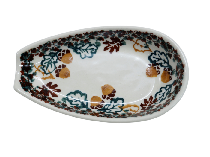 Nie uwierzymy w to, że nigdy nie rozlaliście, pobrudziliście blatu kuchennego bądź obrusu w trakcie gotowania zup, sosów czy zapiekania wszelakich gatunków mięs. Wiemy, jak uciążliwe jest ciągłe zmywanie tłustych plam w trakcie gotowania. Nam zdarzało się to bardzo często - setki razy, stąd pomysł aby zaprojektować ceramiczną podstawkę na łyżkę. Służy ona jako podpórka, podstawka łyżki do gotowania, łyżki, którą mieszamy, próbujemy przygotowywanie posiłki. Jest doskonale wyprofilowana aby utrzymać małą łyżeczkę deserową bądź dużą łyżkę kuchenną, nieprawdaż, że to produkt z serii „musisz mieć”? Zgadzamy się z tym, że gotowanie powinno sprawiać przyjemność, właśnie dlatego produkujemy wyjątkową ceramikę bolesławiecką, która oprócz efektu wizualnego jest przede wszystkim funkcjonalna. Podstawka może służyć również jako podstawka zapalniczki do odpalania kuchni gazowej przed gotowaniem czy paczki zapałek, doskonale sprawdzi się również jako naczynie do wrzucania obranych ząbków czosnku zanim wyląduję w wyciskarce a następnie rozgrzanej patelni lub zapiekanym mięsie. Zapraszamy do zapoznania się z ofertą naczyń użytkowych ceramiki artystycznej marki, ANDY CERAMIKA z Bolesławca.