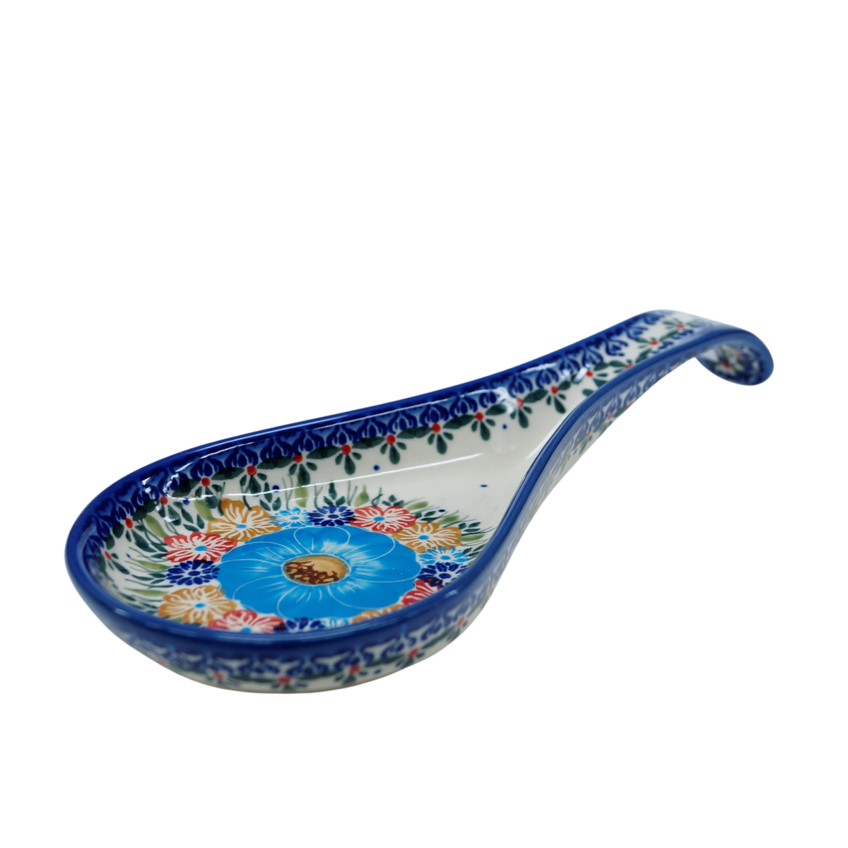 Tacka (podstawka) specjalnie wyprofilowany uchwyt, do łatwiejszego umieszczania akcesoriów do gotowania (szpatułek, łopatek, łyżek i łyżeczek, chochli i chochelek), jest ręcznie dekorowana w fabryce ceramiki bolesławieckiej w unikatowe dekoracje kwiatowe i tradycyjne stempelki.