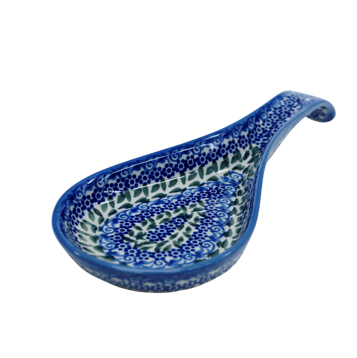 Tacka (podstawka) specjalnie wyprofilowany uchwyt, do łatwiejszego umieszczania akcesoriów do gotowania (szpatułek, łopatek, łyżek i łyżeczek, chochli i chochelek), jest ręcznie dekorowana w fabryce ceramiki bolesławieckiej w unikatowe dekoracje kwiatowe i tradycyjne stempelki.