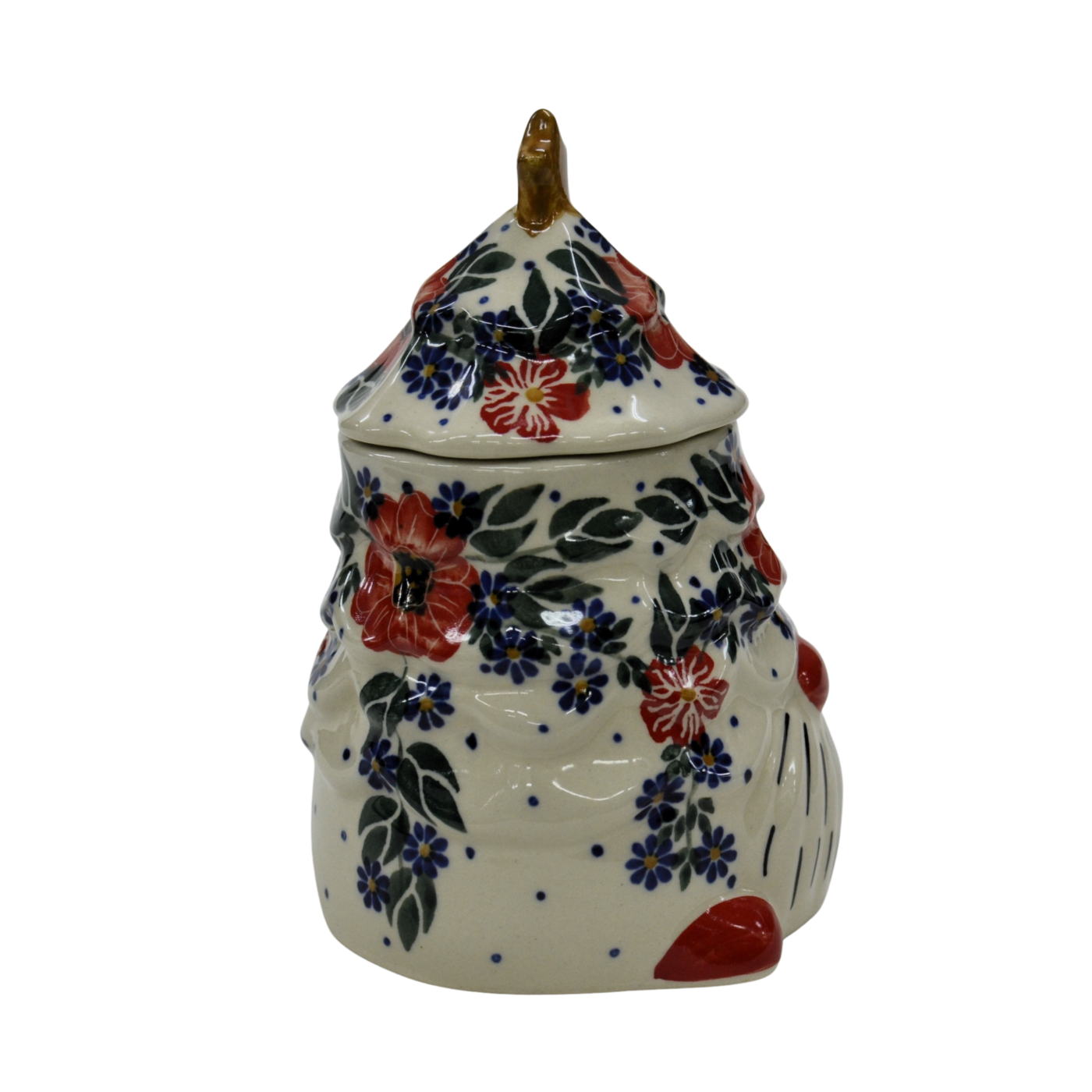 Pięknie, ręcznie dekorowany podszkliwnie pojemnik o pojemności 350 ml.