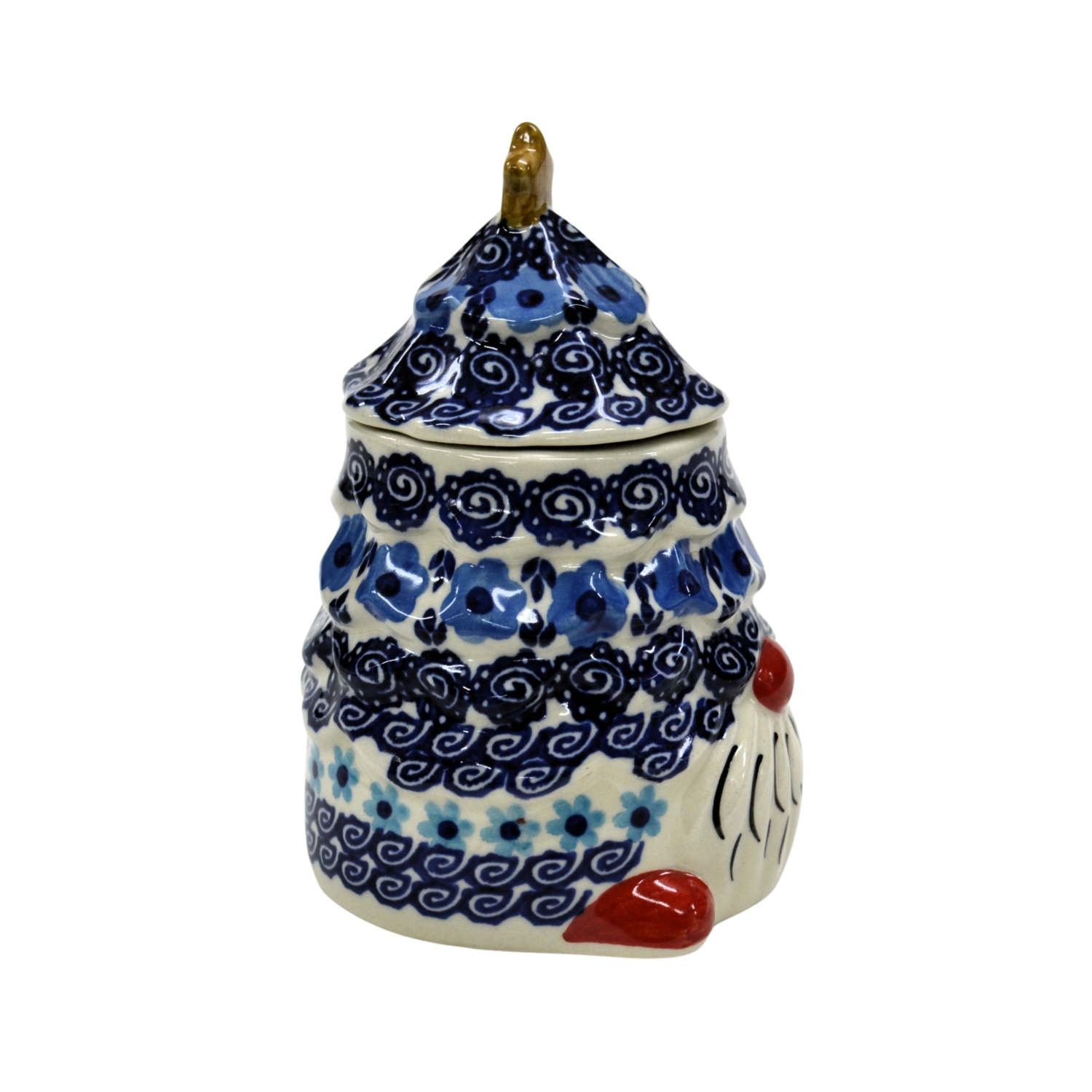 Pięknie, ręcznie dekorowany podszkliwnie pojemnik o pojemności 350 ml.