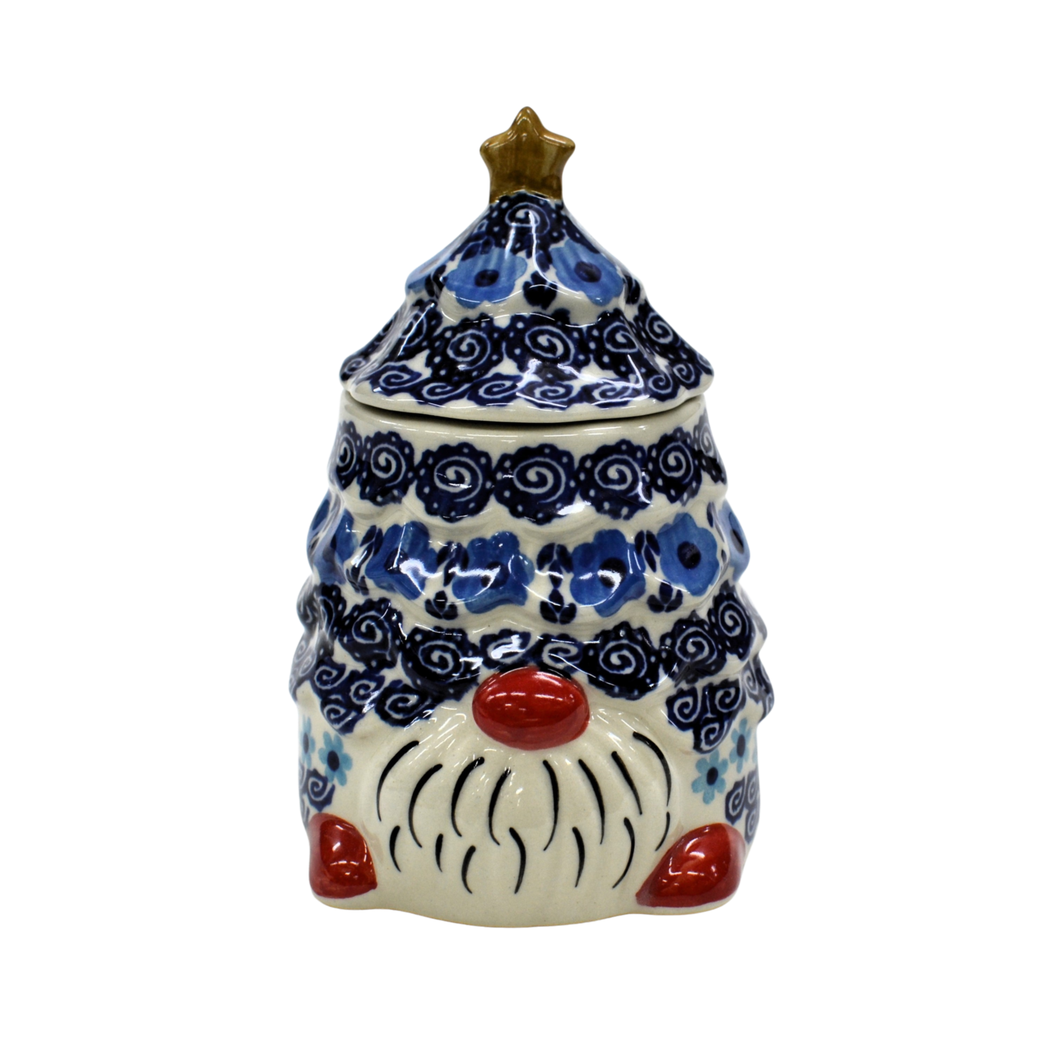 Przedstawiamy prawdziwe dzieło sztuki prosto z bolesławieckiej manufaktury ceramiki. Pojemnik ceramiczny Gnom choinka z pokrywką.