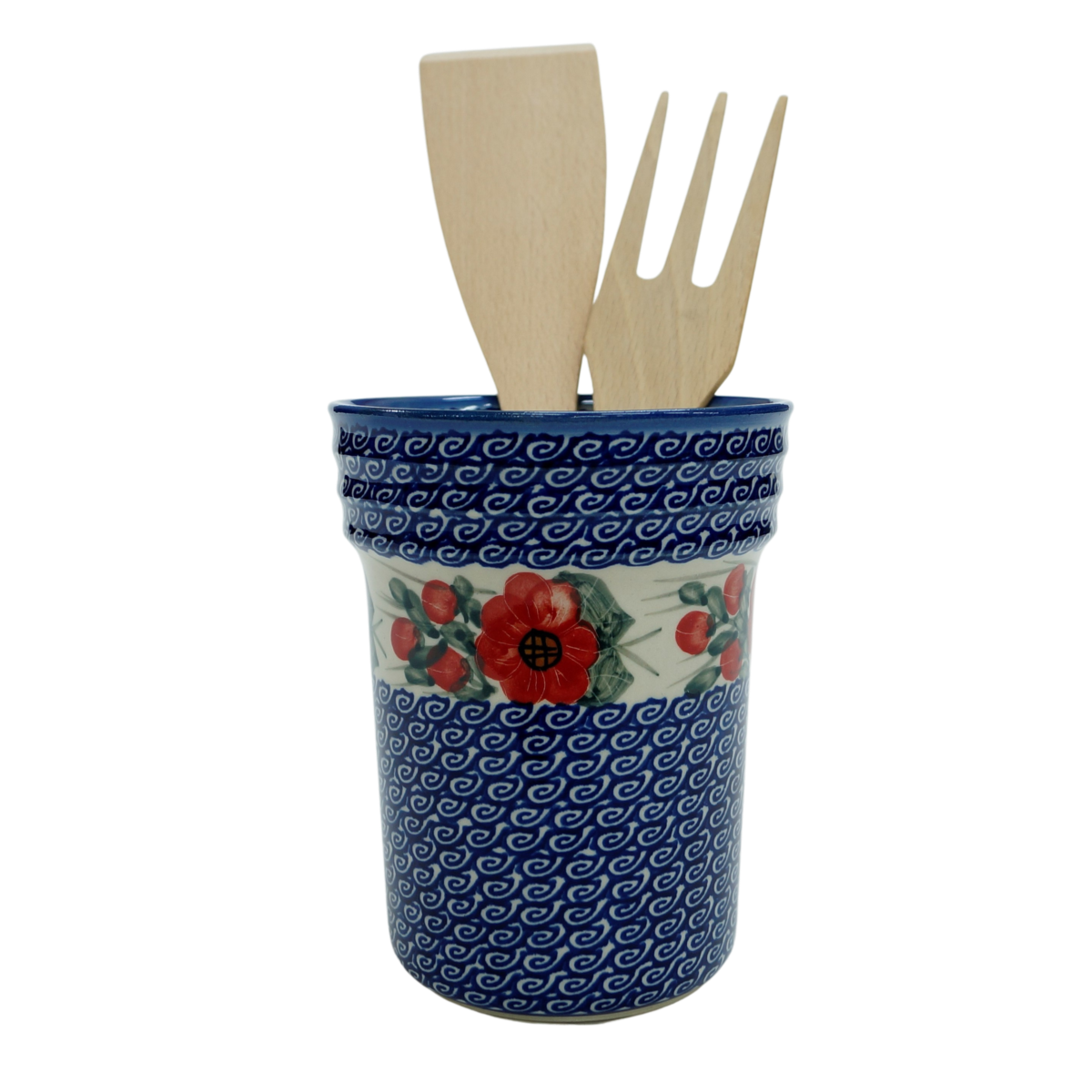 Kuchnia to miejsce w domu, w którym naszym zdaniem dzieje się najwięcej. Każda gospodyni domowa lub hobbystyczny kucharz wiedzą, że porządek w trakcie przygotowywania potraw w garnkach, misach, patelniach czy naczyniach do pieczenia lub zapiekania jest bardzo ważny. Ceramika bolesławiecka jest produktem ukierunkowanym na funkcjonalność i użyteczność. Porządek w kuchni zapewniają różnego typu naczynia i pojemniki do przechowywania, jednym z nich jest pojemnik na przybory kuchenne w którym umieścisz liczne drewniane łyżki, nabieraki, chochle czy łopatki do smażenia. Pojemnik jest ręcznie dekorowany, w tradycyjny sposób zdobienia ceramiki kamionkowej z Bolesławca. Może pomieścić z tuzin łyżek a i tak będzie wystarczający duży na dołożenie kilku kolejnych. Prawda, że przyciąga oko i sprawia wrażenie solidnego garnka pochodzeniem z ziemi bolesławieckiej?