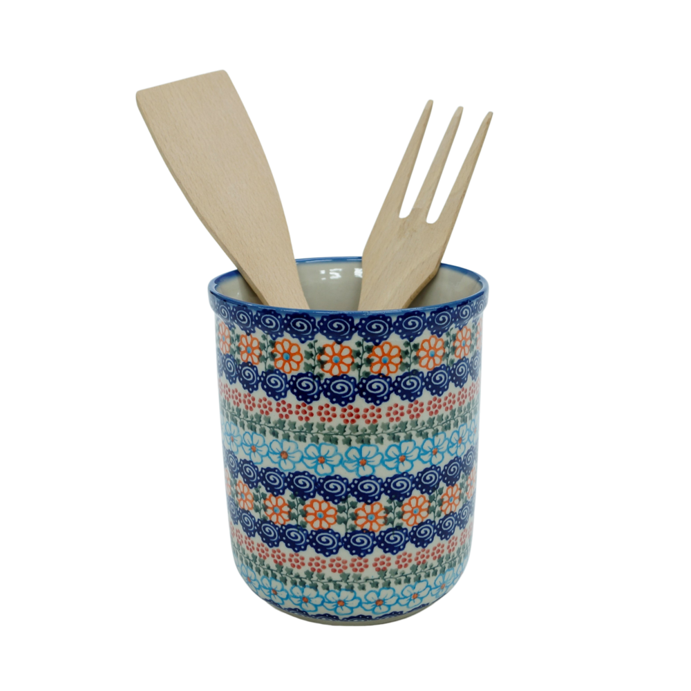 Oryginalny produkt artystycznej ceramiki bolesławieckiej, ręcznie zdobionej - pojemnik na przybory kuchenne duży, ręcznie dekorowany w unikatowe dekoracje oraz tradycyjne stempelkowe, tworzone od wieków.