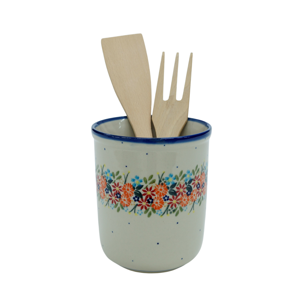 Oryginalny produkt artystycznej ceramiki bolesławieckiej, ręcznie zdobionej - pojemnik na przybory kuchenne duży, ręcznie dekorowany w unikatowe dekoracje oraz tradycyjne stempelkowe, tworzone od wieków.