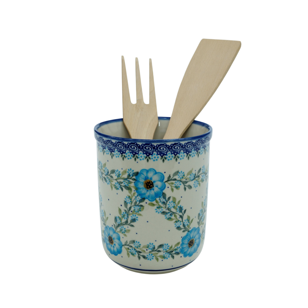 Oryginalny produkt artystycznej ceramiki bolesławieckiej, ręcznie zdobionej - pojemnik na przybory kuchenne duży, ręcznie dekorowany w unikatowe dekoracje oraz tradycyjne stempelkowe, tworzone od wieków.