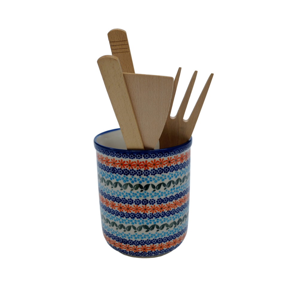 Oryginalny produkt artystycznej ceramiki bolesławieckiej, ręcznie zdobionej - pojemnik na przybory kuchenne duży, ręcznie dekorowany w unikatowe dekoracje oraz tradycyjne stempelkowe, tworzone od wieków.