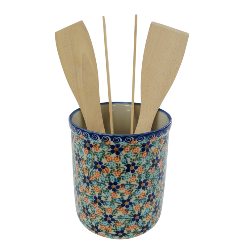 Oryginalny produkt artystycznej ceramiki bolesławieckiej, ręcznie zdobionej - pojemnik na przybory kuchenne duży, ręcznie dekorowany w unikatowe dekoracje oraz tradycyjne stempelkowe, tworzone od wieków.