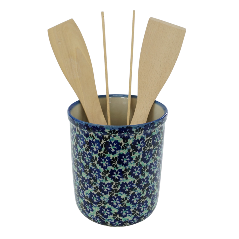Pojemny kubek - pojemnik, pomieści bez problemu komplet niezbędnych łyżek drewnianych czy metalowych i tych z tworzyw sztucznych, chochli, łopatek i innych przyborów kuchennych. Ponadto ładnie się prezentuje, dzięki czemu będzie praktyczną ozdobą naszej kuchni i bardzo przydatnym naczyniem ceramicznych. Łatwy w pielęgnacji, szkliwiony również wewnątrz sprawa iż mycie jest bardzo łatwe i szybkie.