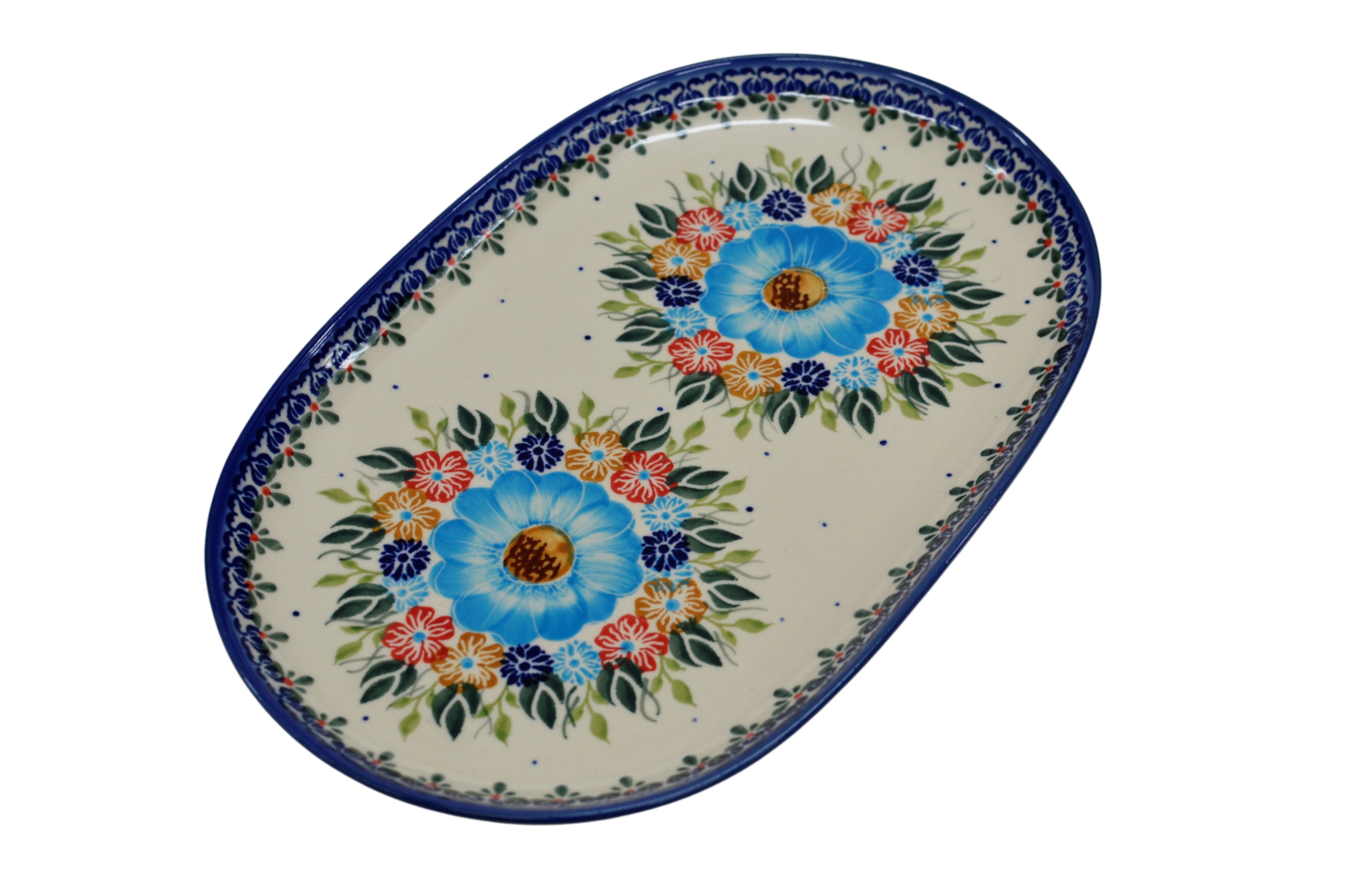 Oryginalny produkt ceramiki bolesławieckiej artystycznej - półmisek owalny średni o długości 28 cm, ręcznie malowany w rodzinnej fabryce, oryginalnej ceramiki bolesławieckiej, ANDY Ceramika.