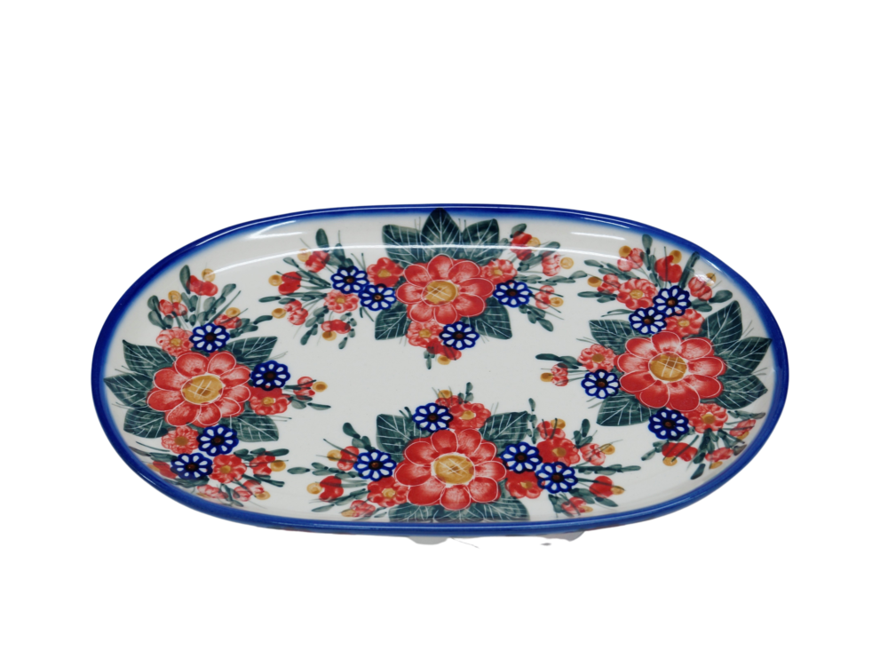Oryginalny produkt ceramiki bolesławieckiej artystycznej - półmisek owalny średni o długości 28 cm, ręcznie malowany w rodzinnej fabryce, oryginalnej ceramiki bolesławieckiej, ANDY Ceramika.