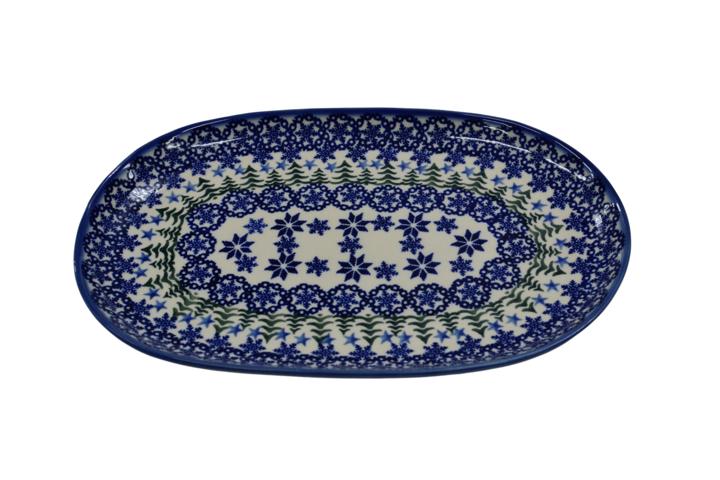 Oryginalny produkt ceramiki bolesławieckiej artystycznej - półmisek owalny średni o długości 28 cm, ręcznie malowany w rodzinnej fabryce, oryginalnej ceramiki bolesławieckiej, ANDY Ceramika.
