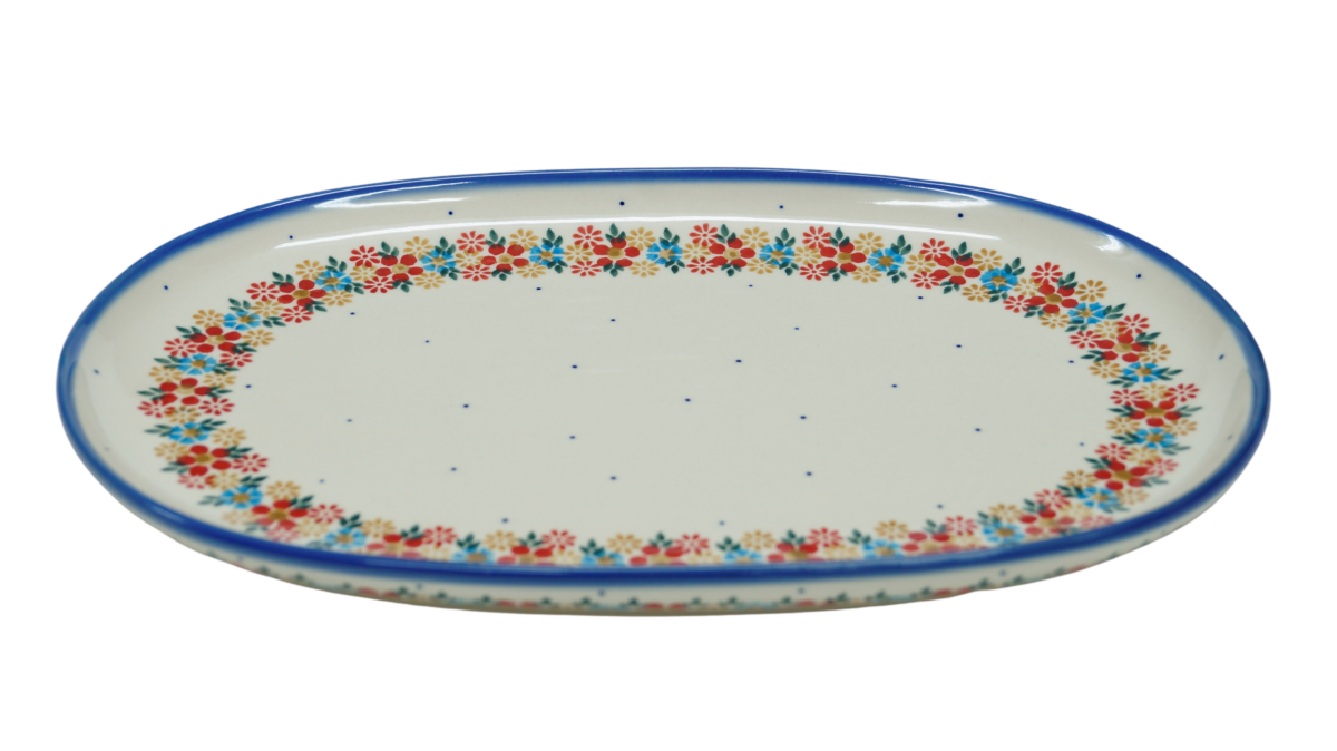 Oryginalny produkt ceramiki bolesławieckiej artystycznej - półmisek owalny duży o długości 33 cm, ręcznie malowany w rodzinnej fabryce oryginalnej ceramiki bolesławieckiej, ANDY Ceramika.