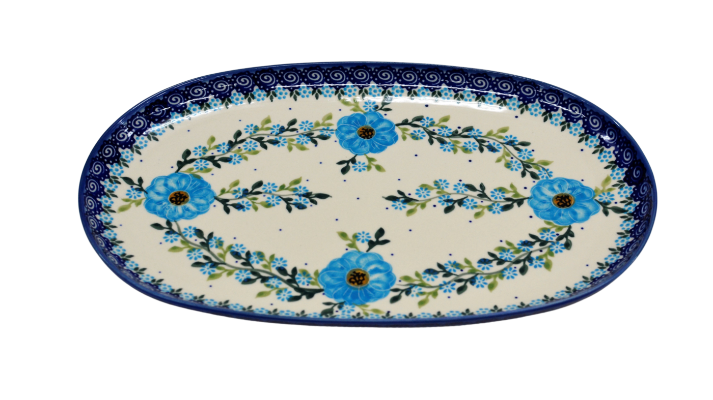 Oryginalny produkt ceramiki bolesławieckiej artystycznej - półmisek owalny duży o długości 33 cm, ręcznie malowany w rodzinnej fabryce oryginalnej ceramiki bolesławieckiej, ANDY Ceramika.