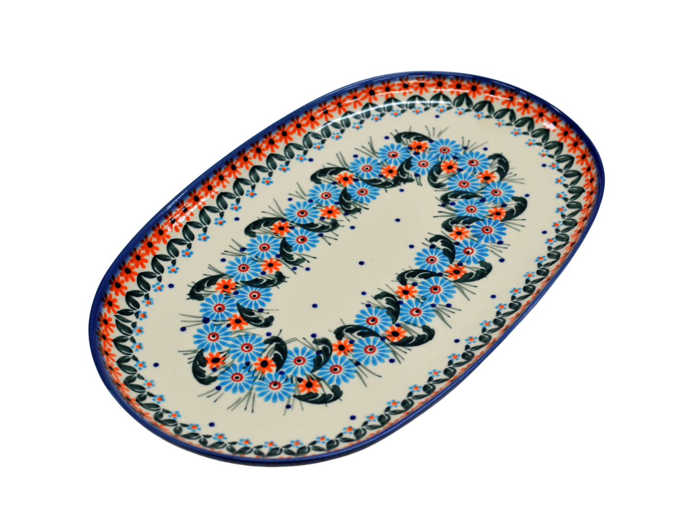 Oryginalny produkt ceramiki bolesławieckiej artystycznej - półmisek owalny duży o długości 33 cm, ręcznie malowany w rodzinnej fabryce oryginalnej ceramiki bolesławieckiej, ANDY Ceramika.