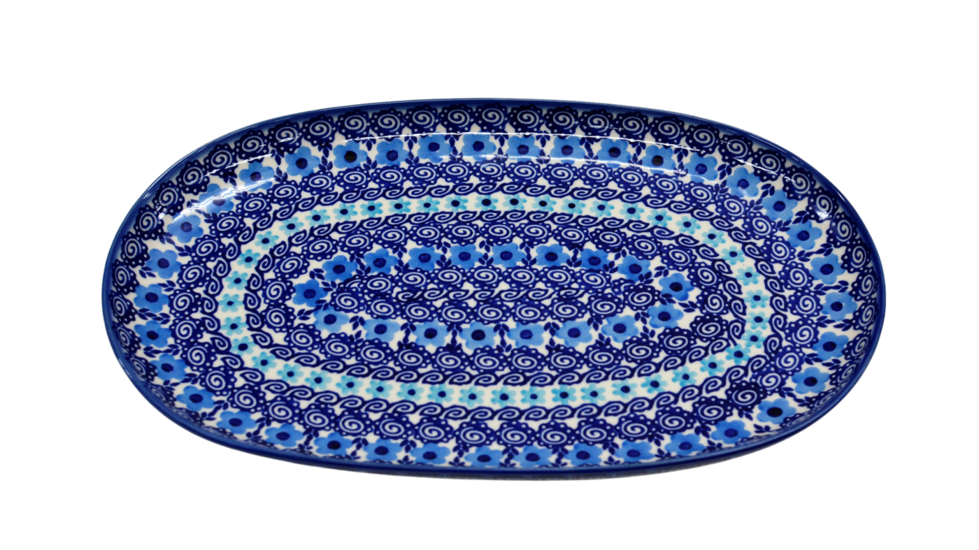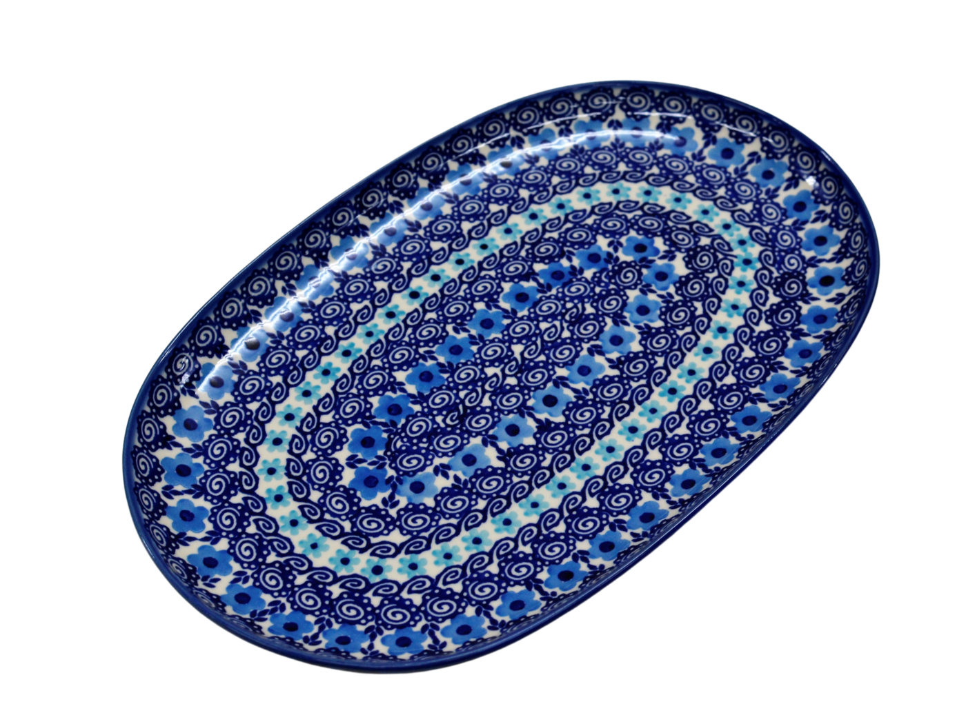 Oryginalny produkt ceramiki bolesławieckiej artystycznej - półmisek owalny duży o długości 33 cm, ręcznie malowany w rodzinnej fabryce oryginalnej ceramiki bolesławieckiej, ANDY Ceramika.