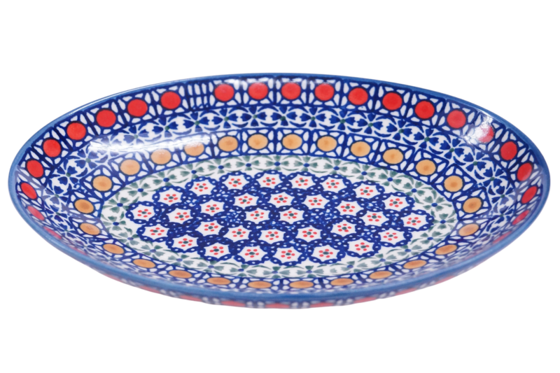 Oryginalny produkt ceramiki bolesławieckiej - półmisek jajko mały, ręcznie malowany wyrób ceramiki użytkowej, powstał w rodzinnej fabryce oryginalnej ceramiki bolesławieckiej, ANDY CERAMIKA.