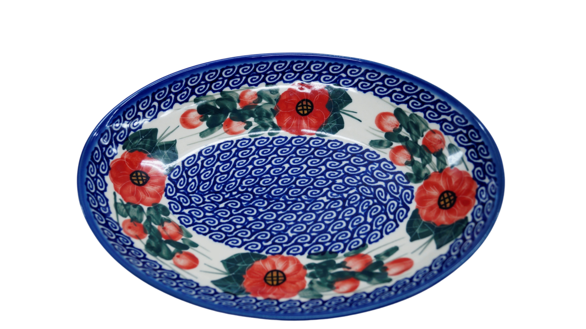 Oryginalny produkt ceramiki bolesławieckiej - półmisek jajko mały, ręcznie malowany wyrób ceramiki użytkowej, powstał w rodzinnej fabryce oryginalnej ceramiki bolesławieckiej, ANDY CERAMIKA.