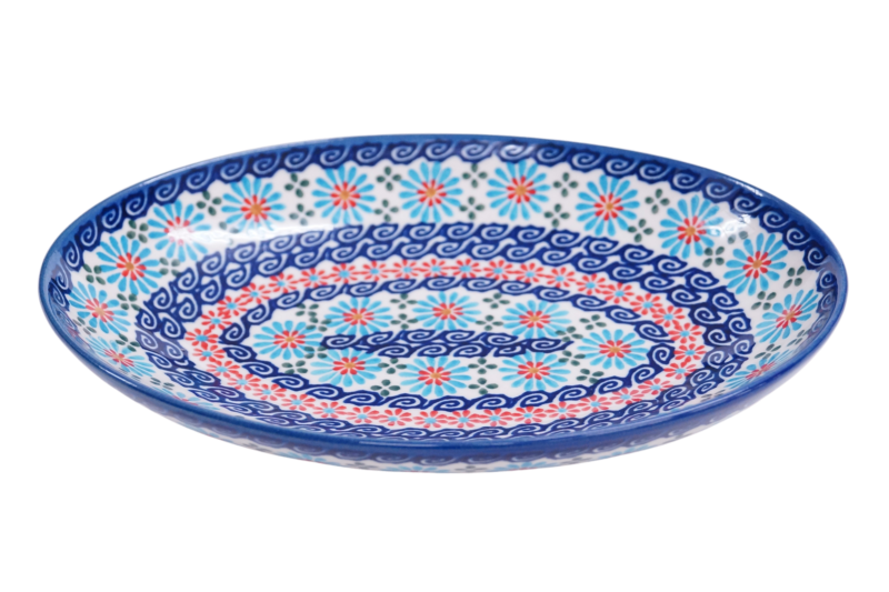 Oryginalny produkt ceramiki bolesławieckiej - półmisek jajko mały, ręcznie malowany wyrób ceramiki użytkowej, powstał w rodzinnej fabryce oryginalnej ceramiki bolesławieckiej, ANDY CERAMIKA.