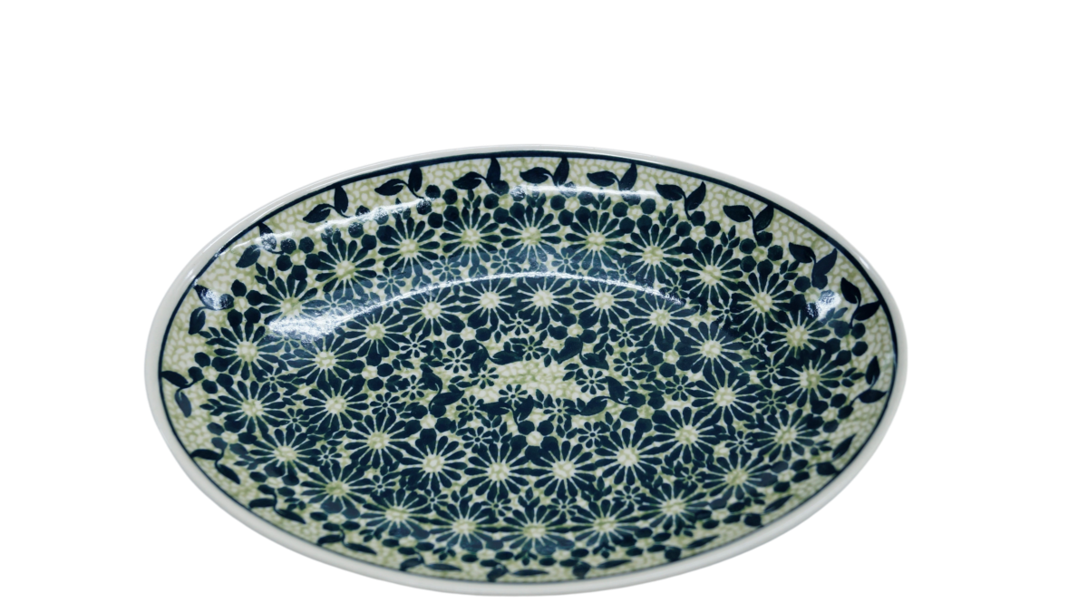 Oryginalny produkt ceramiki bolesławieckiej - półmisek jajko mały, ręcznie malowany wyrób ceramiki użytkowej, powstał w rodzinnej fabryce oryginalnej ceramiki bolesławieckiej, ANDY CERAMIKA.
