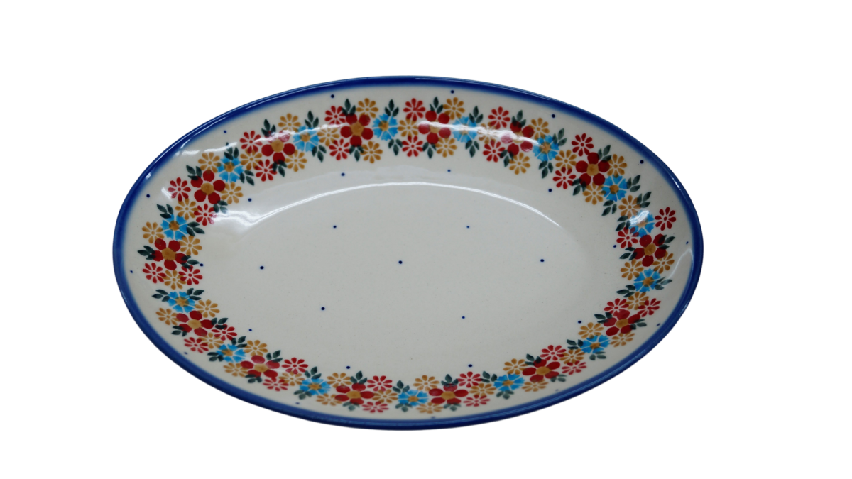 Oryginalny produkt ceramiki bolesławieckiej - półmisek jajko mały, ręcznie malowany wyrób ceramiki użytkowej, powstał w rodzinnej fabryce oryginalnej ceramiki bolesławieckiej, ANDY CERAMIKA.