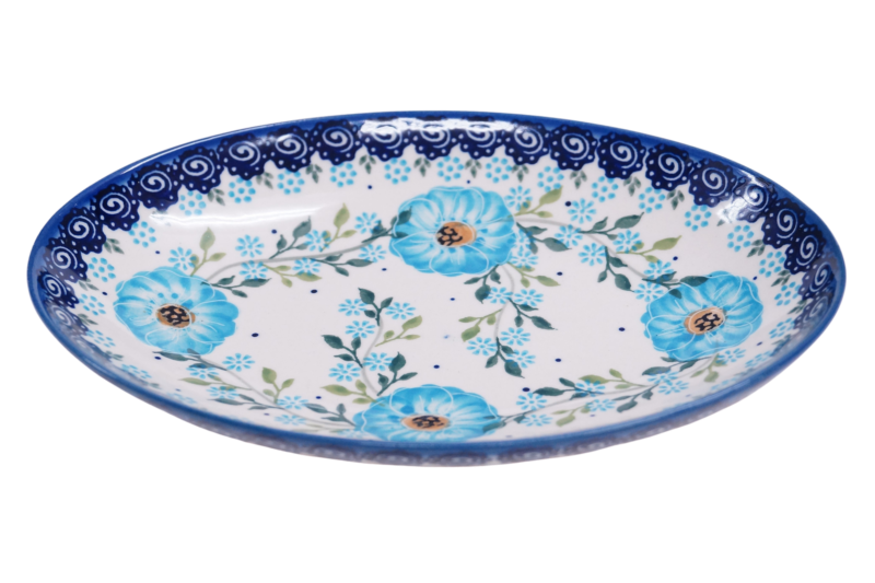 Oryginalny produkt ceramiki bolesławieckiej - półmisek jajko mały, ręcznie malowany wyrób ceramiki użytkowej, powstał w rodzinnej fabryce oryginalnej ceramiki bolesławieckiej, ANDY CERAMIKA.