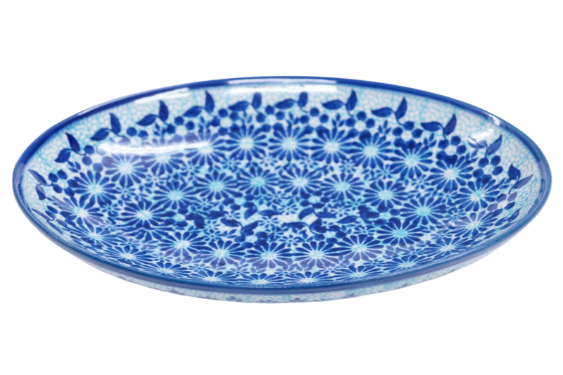 Oryginalny produkt ceramiki bolesławieckiej - półmisek jajko mały, ręcznie malowany wyrób ceramiki użytkowej, powstał w rodzinnej fabryce oryginalnej ceramiki bolesławieckiej, ANDY CERAMIKA.