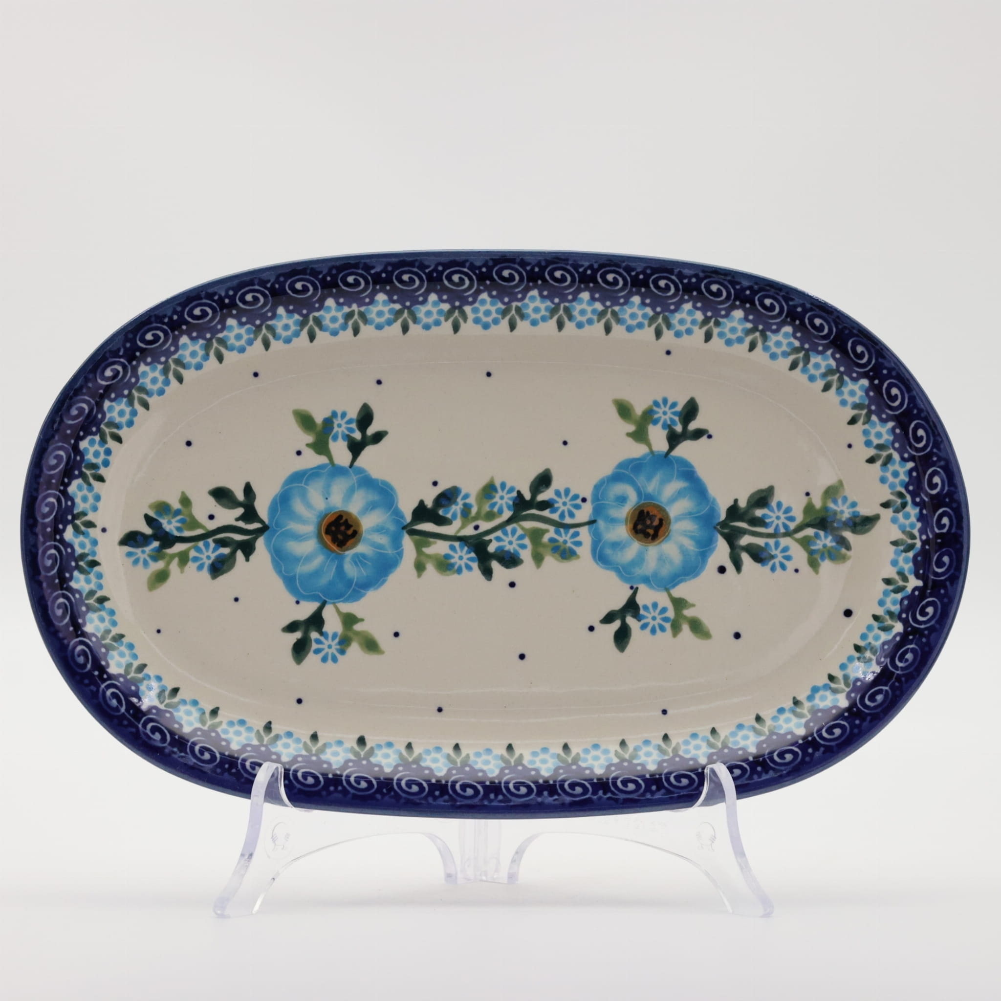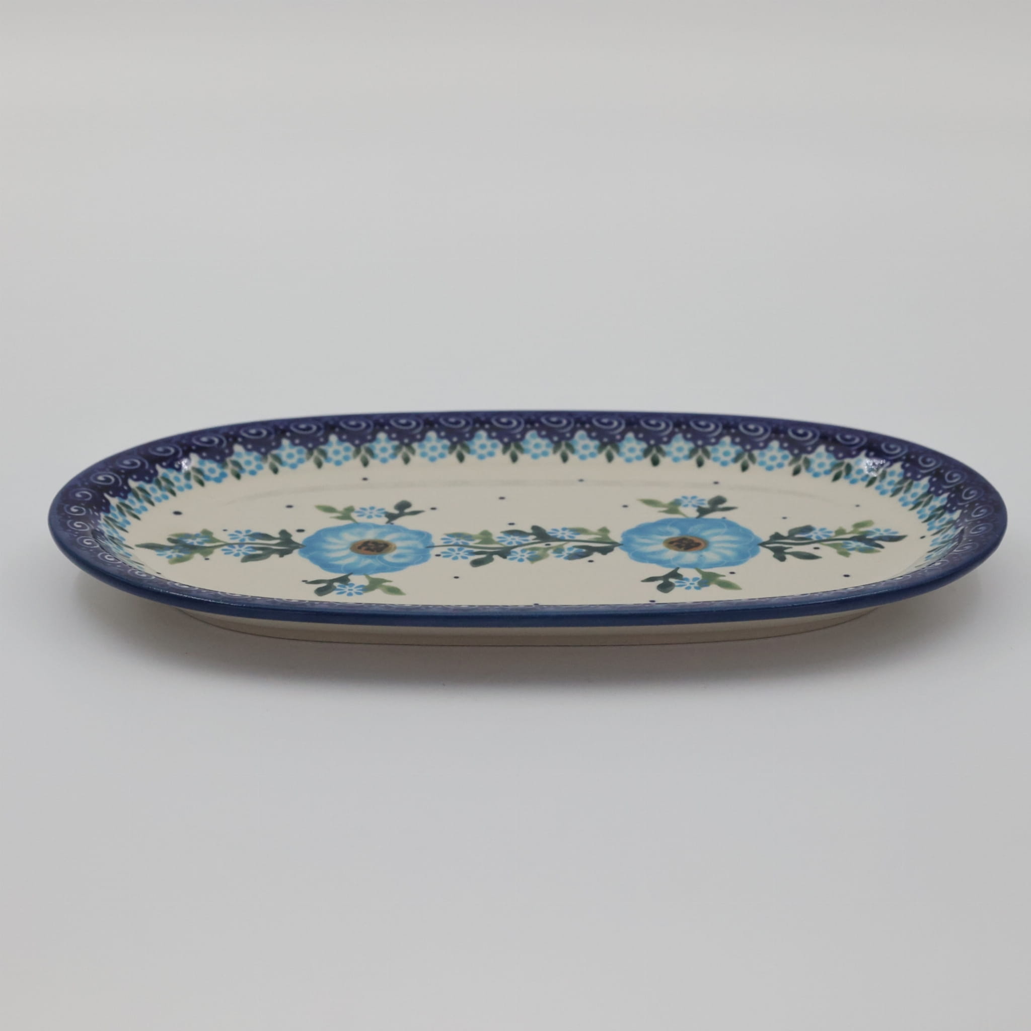 Półmisek zdobi charakterystyczne, ręcznie malowane wzory, typowe dla bolesławieckiej ceramiki, które od lat cieszą się uznaniem na całym świecie. Oryginalność i kunszt wykonania sprawiają, że każdy egzemplarz jest niepowtarzalny i stanowi prawdziwe dzieło sztuki użytkowej.
