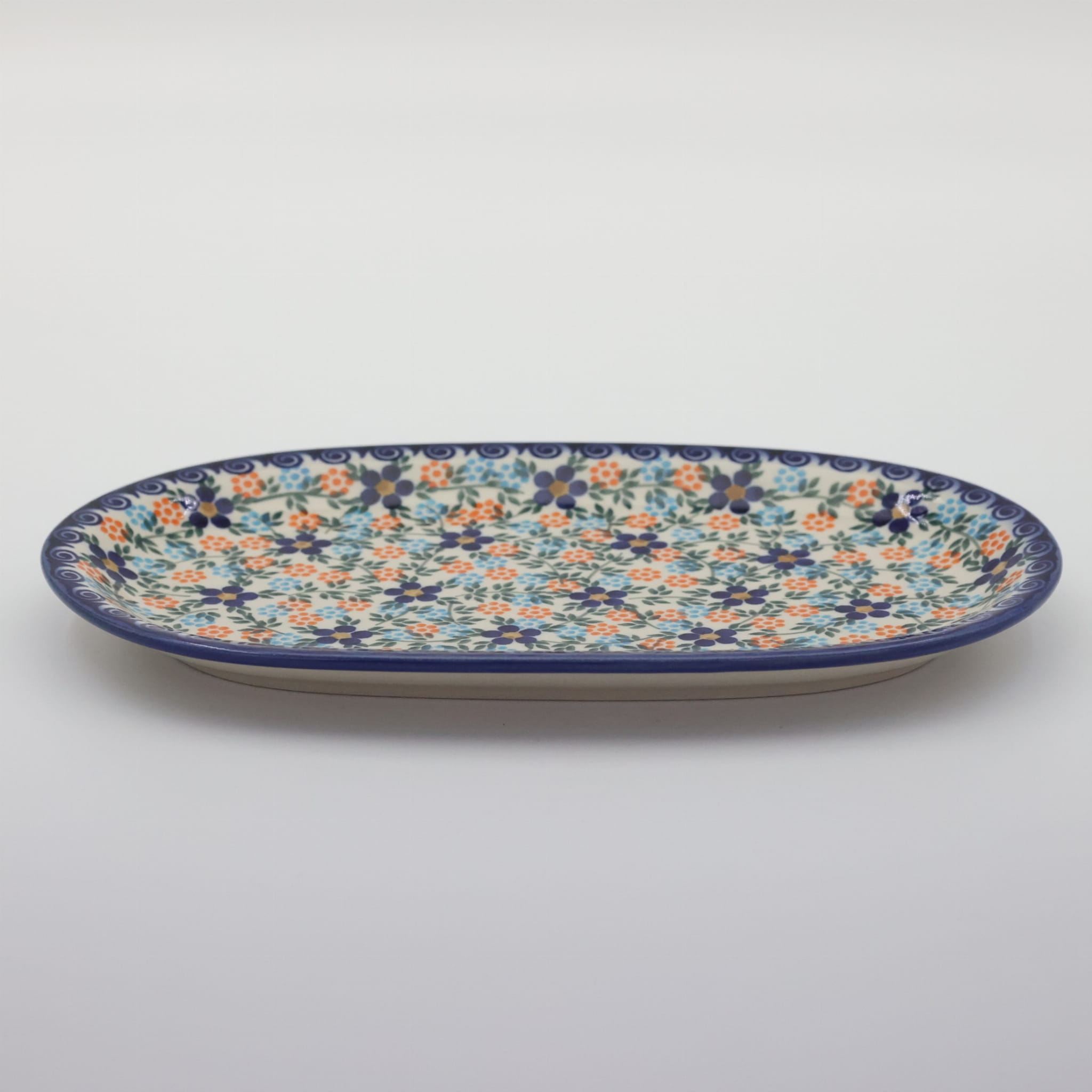Półmisek zdobi charakterystyczne, ręcznie malowane wzory, typowe dla bolesławieckiej ceramiki, które od lat cieszą się uznaniem na całym świecie. Oryginalność i kunszt wykonania sprawiają, że każdy egzemplarz jest niepowtarzalny i stanowi prawdziwe dzieło sztuki użytkowej.
