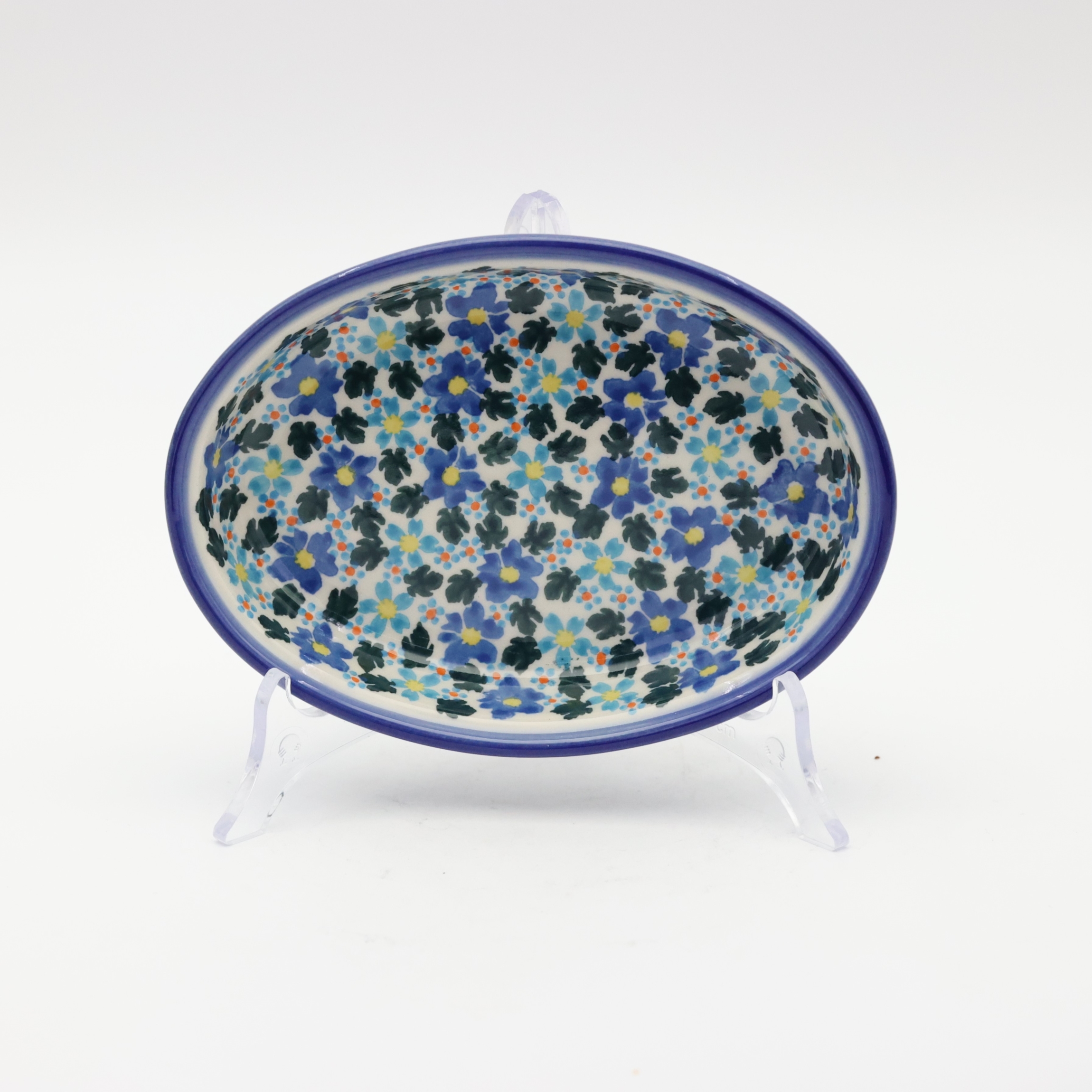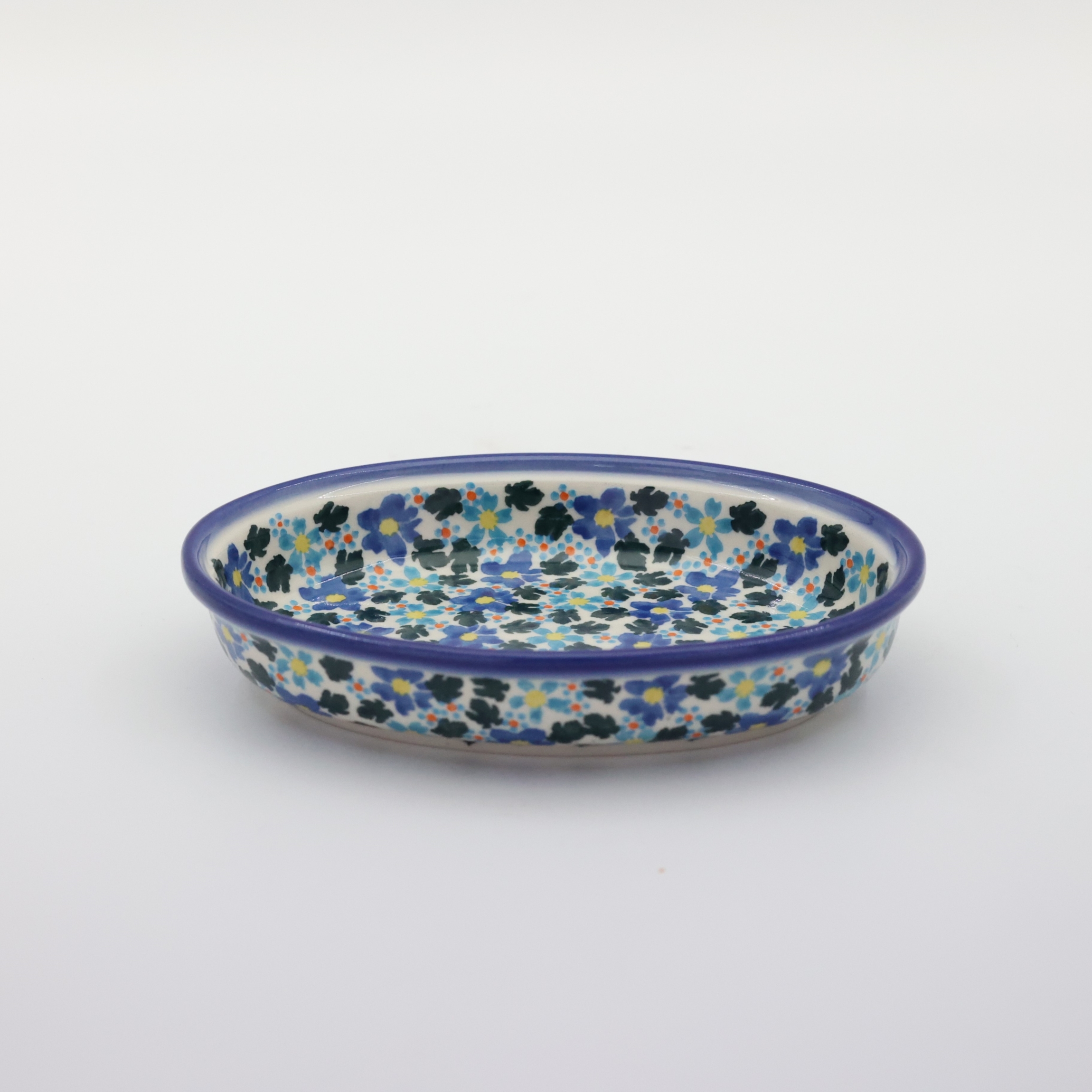 Półmiski ceramiczne są szeroko rozwinięta gamą naczyń ceramicznych w naszej ofercie. Znajdują najczęstsze zastosowanie podczas podawania posiłków i w trakcie ich przygotowywania. Wśród wielu kształtów i wielkości naczyń ceramicznych wyróżnić możemy półmisek owalny mały o charakterystycznym kształcie owalu lub niektórych zwanych spłaszczonym. Swoje zastosowanie odnajdzie podczas zapiekania przeróżnych potraw warzywnych i mięsnych, będzie rewelacyjnie służyć do zapiekania sera feta czy podawania pojedynczych potraw na gorącym półmisku. Stosunkowo wysoki rant pozwala na użycie go do podania dań otoczonych wszelkimi sosami w tym pomidorowym czy pieczarkowym lub grzybowym. Przez nas stosowany jest często do podania budyniu czy znakomitego crème brulee o słodkim i przyjemnym smaku. Ceramika bolesławiecka jest bardzo charakterystycznym produktem na rynku rękodzieła artystycznego, oryginalne dekoracje ukryte pod szkliwem, które nadaje wysokiej jakości i trwałości wyrobów ceramicznych. Gama produktów jest bardzo bogata a do tego realizujemy zamówienia indywidualne wg potrzeb naszych klientów.