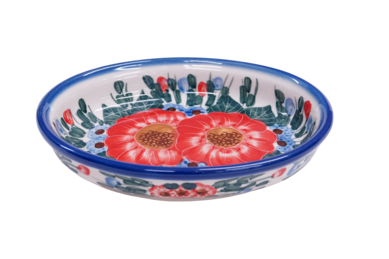 Półmiski ceramiczne są szeroko rozwinięta gamą naczyń ceramicznych w naszej ofercie. Znajdują najczęstsze zastosowanie podczas podawania posiłków i w trakcie ich przygotowywania. Wśród wielu kształtów i wielkości naczyń ceramicznych wyróżnić możemy półmisek owalny mały o charakterystycznym kształcie owalu lub niektórych zwanych spłaszczonym. Swoje zastosowanie odnajdzie podczas zapiekania przeróżnych potraw warzywnych i mięsnych, będzie rewelacyjnie służyć do zapiekania sera feta czy podawania pojedynczych potraw na gorącym półmisku. Stosunkowo wysoki rant pozwala na użycie go do podania dań otoczonych wszelkimi sosami w tym pomidorowym czy pieczarkowym lub grzybowym. Przez nas stosowany jest często do podania budyniu czy znakomitego crème brulee o słodkim i przyjemnym smaku. Ceramika bolesławiecka jest bardzo charakterystycznym produktem na rynku rękodzieła artystycznego, oryginalne dekoracje ukryte pod szkliwem, które nadaje wysokiej jakości i trwałości wyrobów ceramicznych. Gama produktów jest bardzo bogata a do tego realizujemy zamówienia indywidualne wg potrzeb naszych klientów.