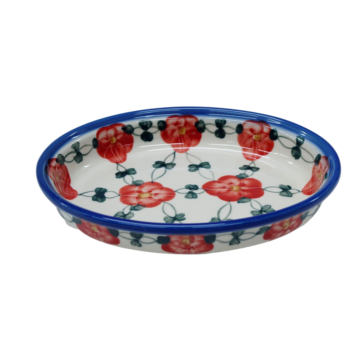 Półmiski ceramiczne są szeroko rozwinięta gamą naczyń ceramicznych w naszej ofercie. Znajdują najczęstsze zastosowanie podczas podawania posiłków i w trakcie ich przygotowywania. Wśród wielu kształtów i wielkości naczyń ceramicznych wyróżnić możemy półmisek owalny mały o charakterystycznym kształcie owalu lub niektórych zwanych spłaszczonym. Swoje zastosowanie odnajdzie podczas zapiekania przeróżnych potraw warzywnych i mięsnych, będzie rewelacyjnie służyć do zapiekania sera feta czy podawania pojedynczych potraw na gorącym półmisku. Stosunkowo wysoki rant pozwala na użycie go do podania dań otoczonych wszelkimi sosami w tym pomidorowym czy pieczarkowym lub grzybowym. Przez nas stosowany jest często do podania budyniu czy znakomitego crème brulee o słodkim i przyjemnym smaku. Ceramika bolesławiecka jest bardzo charakterystycznym produktem na rynku rękodzieła artystycznego, oryginalne dekoracje ukryte pod szkliwem, które nadaje wysokiej jakości i trwałości wyrobów ceramicznych. Gama produktów jest bardzo bogata a do tego realizujemy zamówienia indywidualne wg potrzeb naszych klientów.