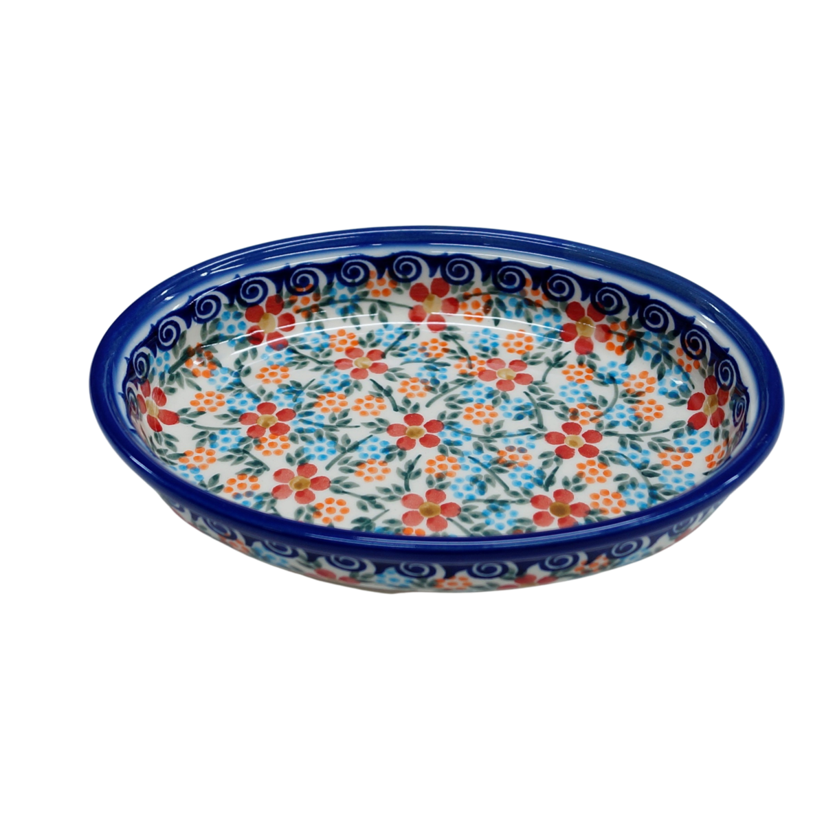 Półmiski ceramiczne są szeroko rozwinięta gamą naczyń ceramicznych w naszej ofercie. Znajdują najczęstsze zastosowanie podczas podawania posiłków i w trakcie ich przygotowywania. Wśród wielu kształtów i wielkości naczyń ceramicznych wyróżnić możemy półmisek owalny mały o charakterystycznym kształcie owalu lub niektórych zwanych spłaszczonym. Swoje zastosowanie odnajdzie podczas zapiekania przeróżnych potraw warzywnych i mięsnych, będzie rewelacyjnie służyć do zapiekania sera feta czy podawania pojedynczych potraw na gorącym półmisku. Stosunkowo wysoki rant pozwala na użycie go do podania dań otoczonych wszelkimi sosami w tym pomidorowym czy pieczarkowym lub grzybowym. Przez nas stosowany jest często do podania budyniu czy znakomitego crème brulee o słodkim i przyjemnym smaku. Ceramika bolesławiecka jest bardzo charakterystycznym produktem na rynku rękodzieła artystycznego, oryginalne dekoracje ukryte pod szkliwem, które nadaje wysokiej jakości i trwałości wyrobów ceramicznych. Gama produktów jest bardzo bogata a do tego realizujemy zamówienia indywidualne wg potrzeb naszych klientów.