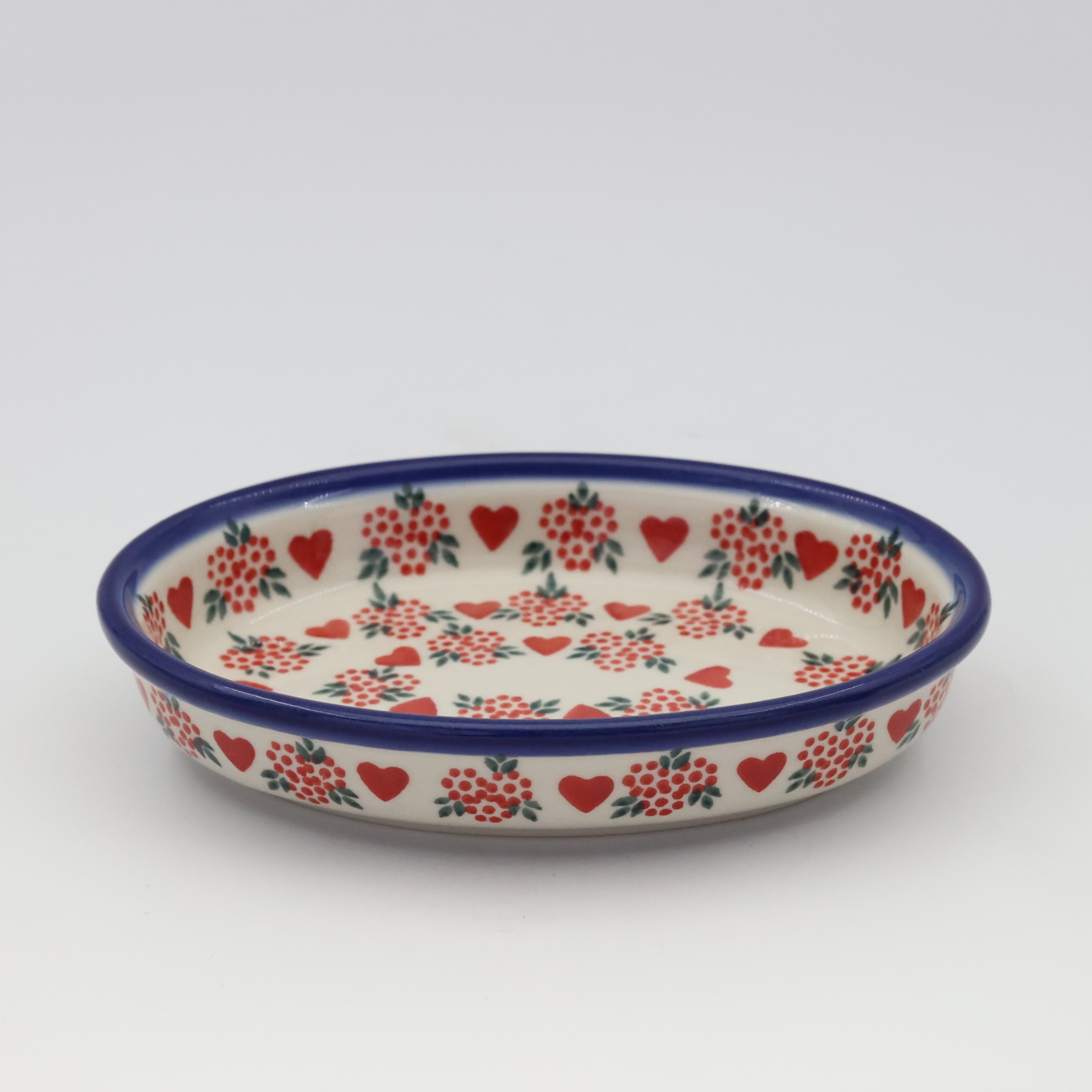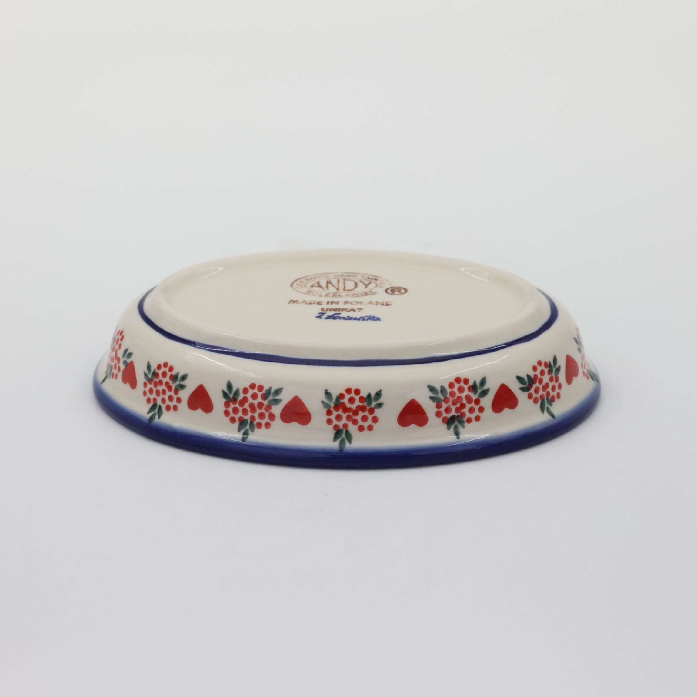 Półmiski ceramiczne są szeroko rozwinięta gamą naczyń ceramicznych w naszej ofercie. Znajdują najczęstsze zastosowanie podczas podawania posiłków i w trakcie ich przygotowywania. Wśród wielu kształtów i wielkości naczyń ceramicznych wyróżnić możemy półmisek owalny mały o charakterystycznym kształcie owalu lub niektórych zwanych spłaszczonym. Swoje zastosowanie odnajdzie podczas zapiekania przeróżnych potraw warzywnych i mięsnych, będzie rewelacyjnie służyć do zapiekania sera feta czy podawania pojedynczych potraw na gorącym półmisku. Stosunkowo wysoki rant pozwala na użycie go do podania dań otoczonych wszelkimi sosami w tym pomidorowym czy pieczarkowym lub grzybowym. Przez nas stosowany jest często do podania budyniu czy znakomitego crème brulee o słodkim i przyjemnym smaku. Ceramika bolesławiecka jest bardzo charakterystycznym produktem na rynku rękodzieła artystycznego, oryginalne dekoracje ukryte pod szkliwem, które nadaje wysokiej jakości i trwałości wyrobów ceramicznych. Gama produktów jest bardzo bogata a do tego realizujemy zamówienia indywidualne wg potrzeb naszych klientów.