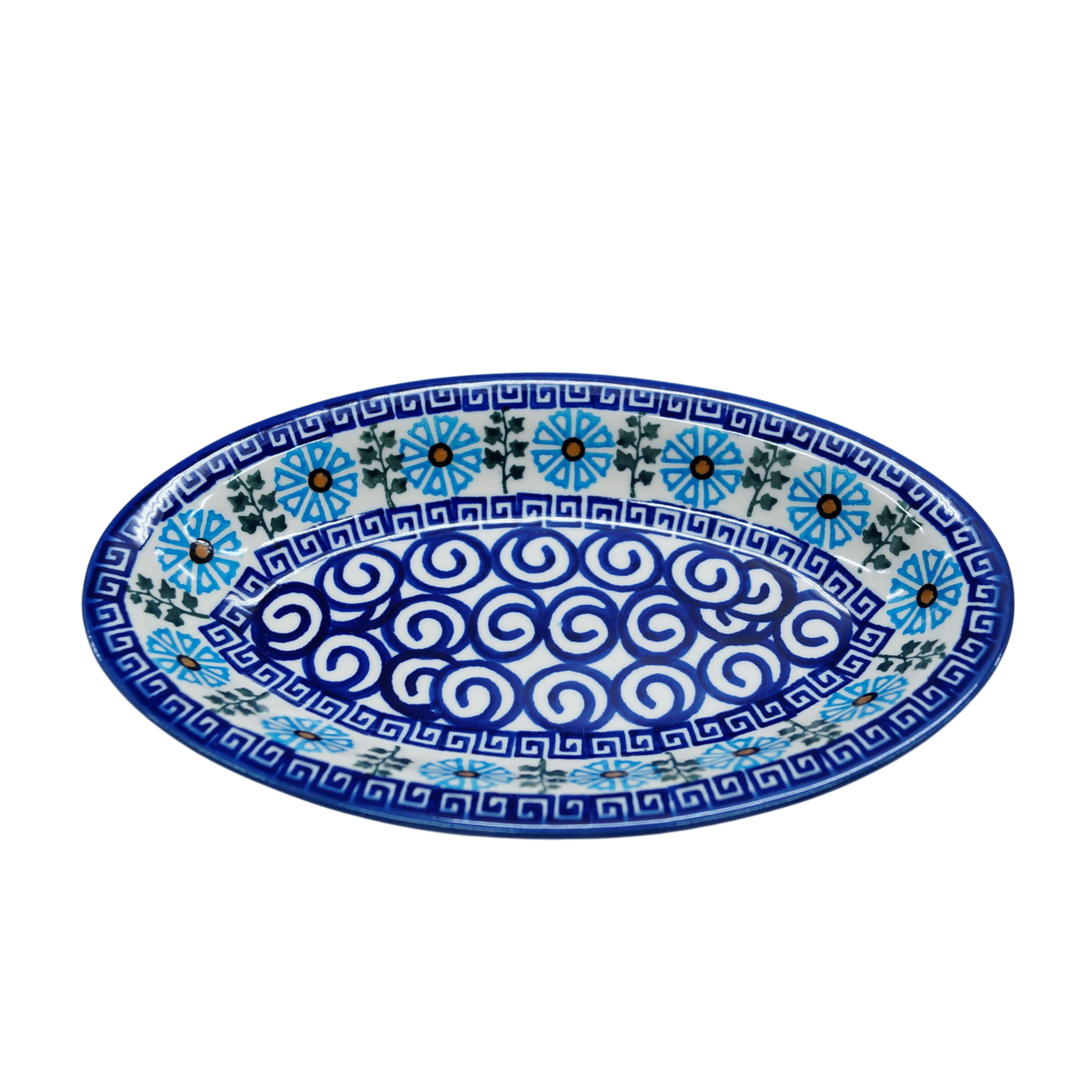 Piękny, ręcznie zdobiony półmisek ceramiczny o długości 21,1 cm i szerokości 12,5 cm.