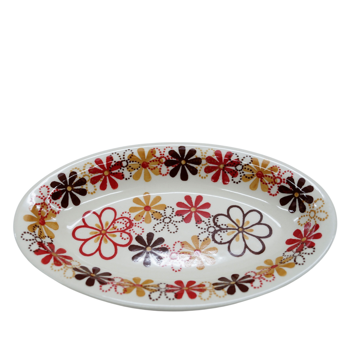Piękny, ręcznie zdobiony półmisek ceramiczny o długości 21,1 cm i szerokości 12,5 cm.