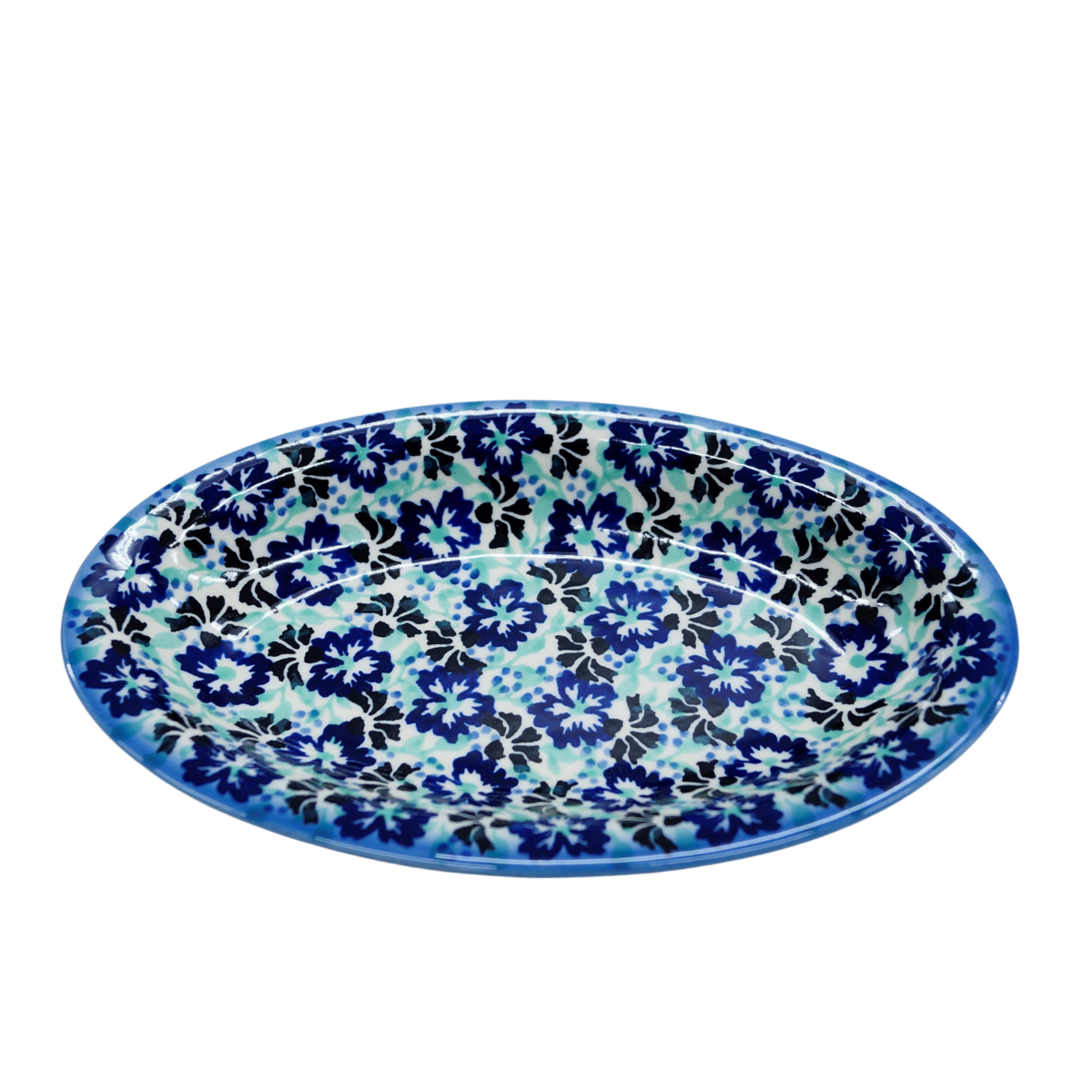 Piękny, ręcznie zdobiony półmisek ceramiczny o długości 21,1 cm i szerokości 12,5 cm.