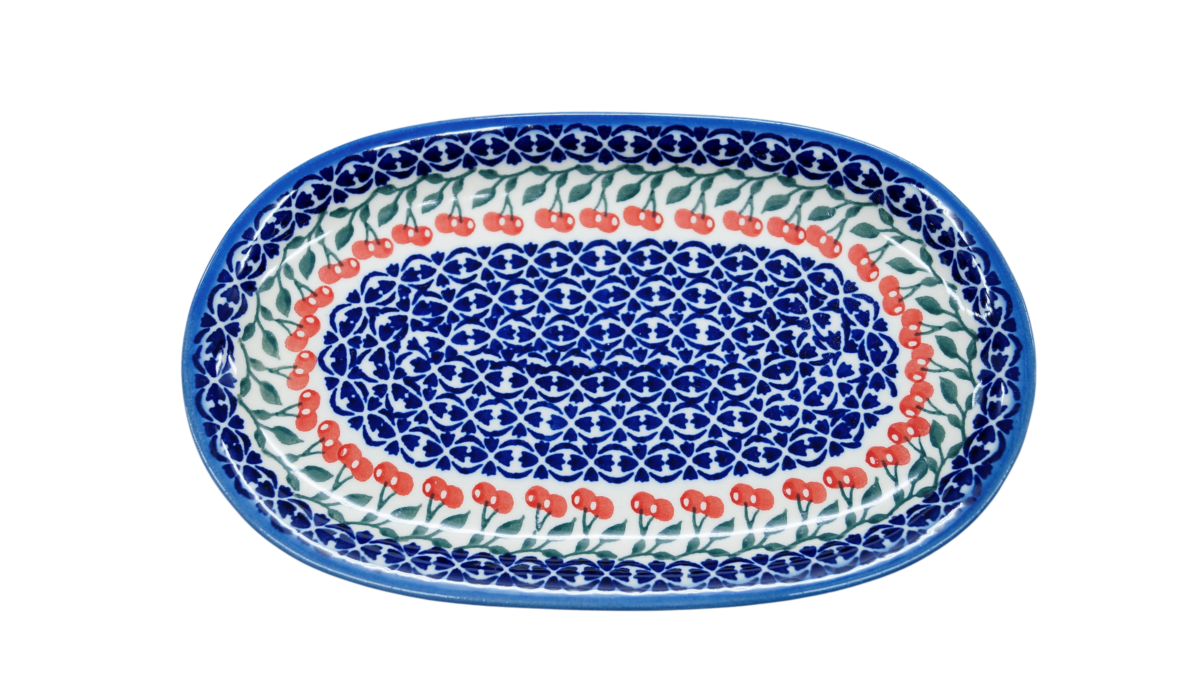 Oryginalny produkt ceramiki bolesławieckiej artystycznej - półmisek owalny duży o długości 23 cm, ręcznie malowany w rodzinnej fabryce oryginalnej ceramiki bolesławieckiej, ANDY Ceramika.