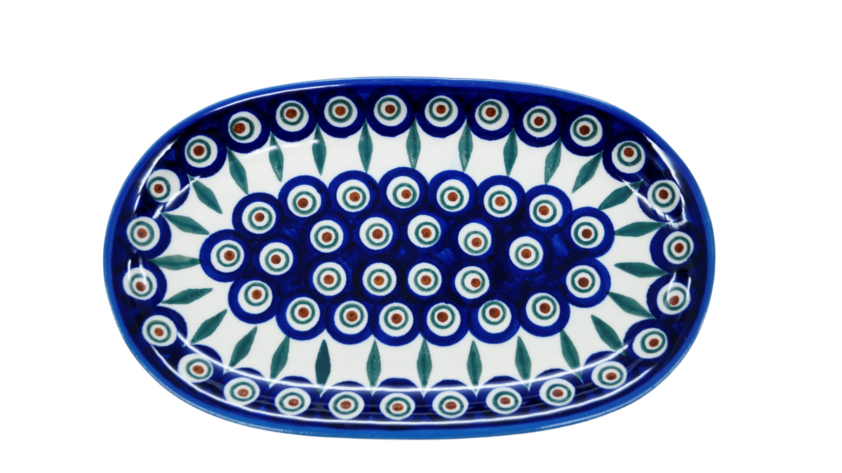 Oryginalny produkt ceramiki bolesławieckiej artystycznej - półmisek owalny duży o długości 23 cm, ręcznie malowany w rodzinnej fabryce oryginalnej ceramiki bolesławieckiej, ANDY Ceramika.