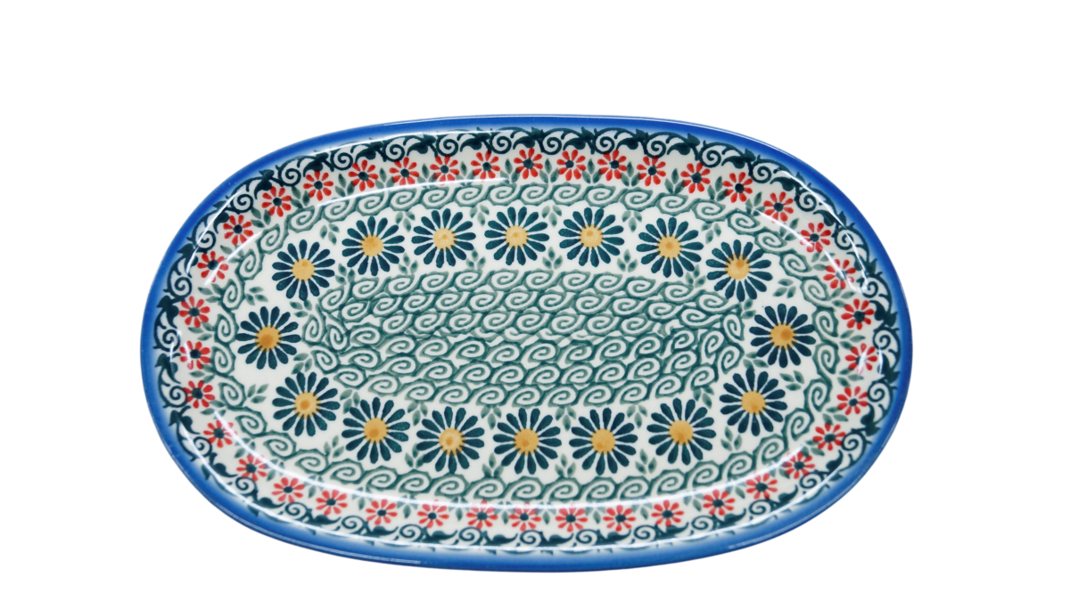 Oryginalny produkt ceramiki bolesławieckiej artystycznej - półmisek owalny duży o długości 23 cm, ręcznie malowany w rodzinnej fabryce oryginalnej ceramiki bolesławieckiej, ANDY Ceramika.