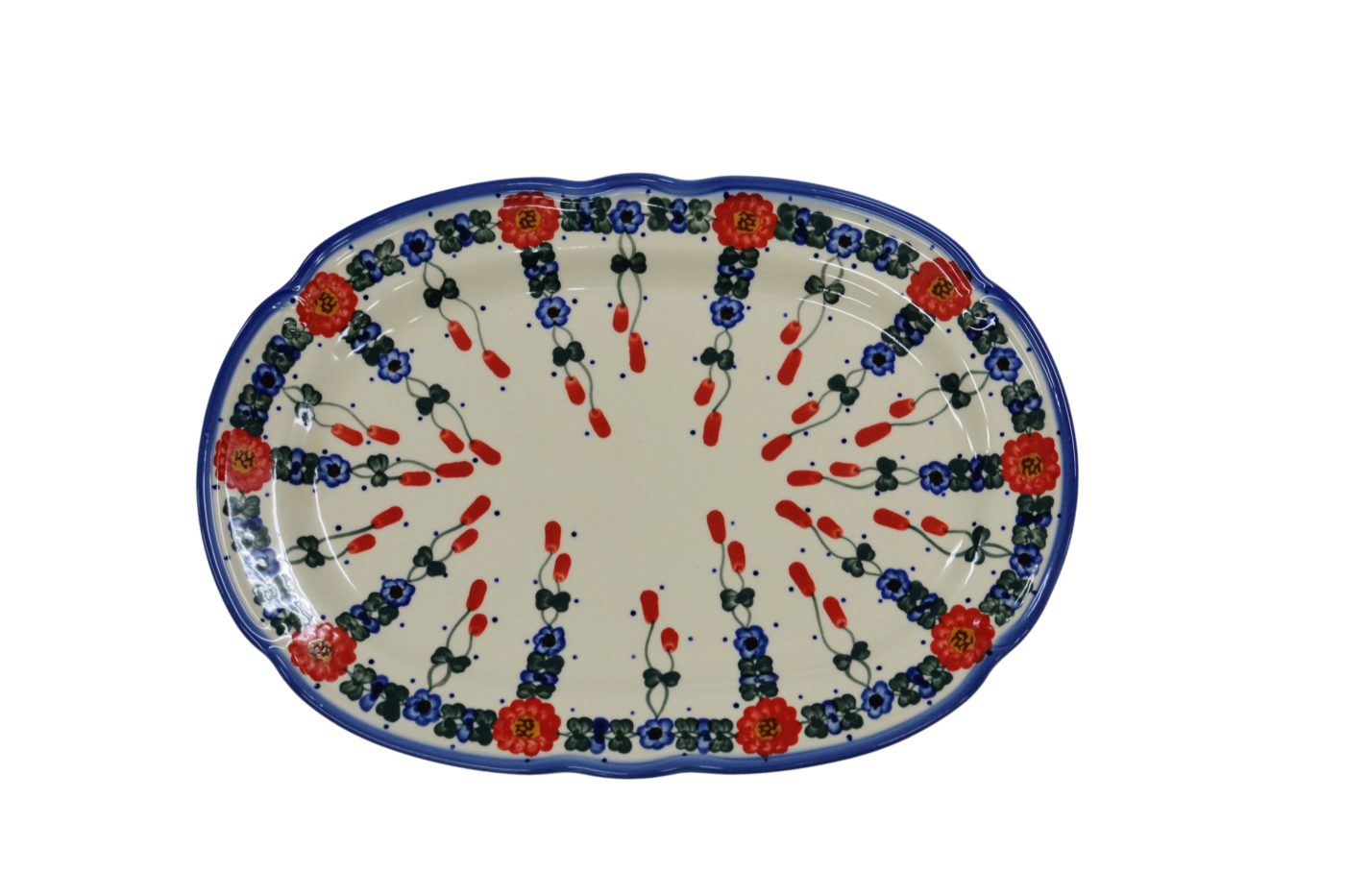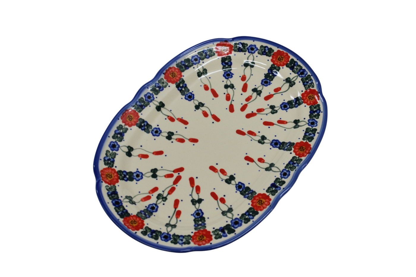 Oryginalny produkt ceramiki bolesławieckiej - półmisek owalny z reliefem, ręcznie malowany w rodzinnej fabryce oryginalnej ceramiki bolesławieckiej, ANDY CERAMIKA.